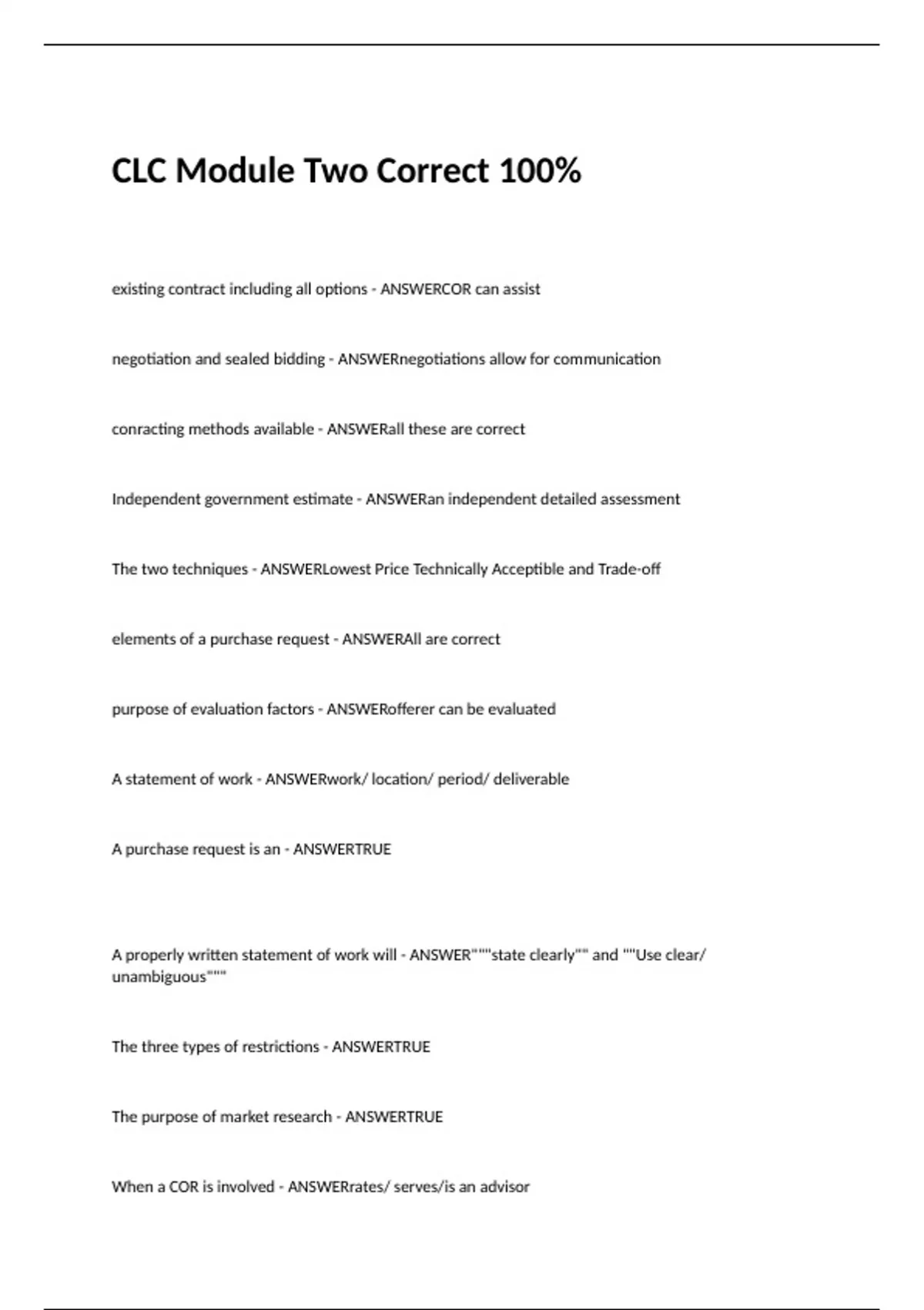 CLC Module Two Correct 100%