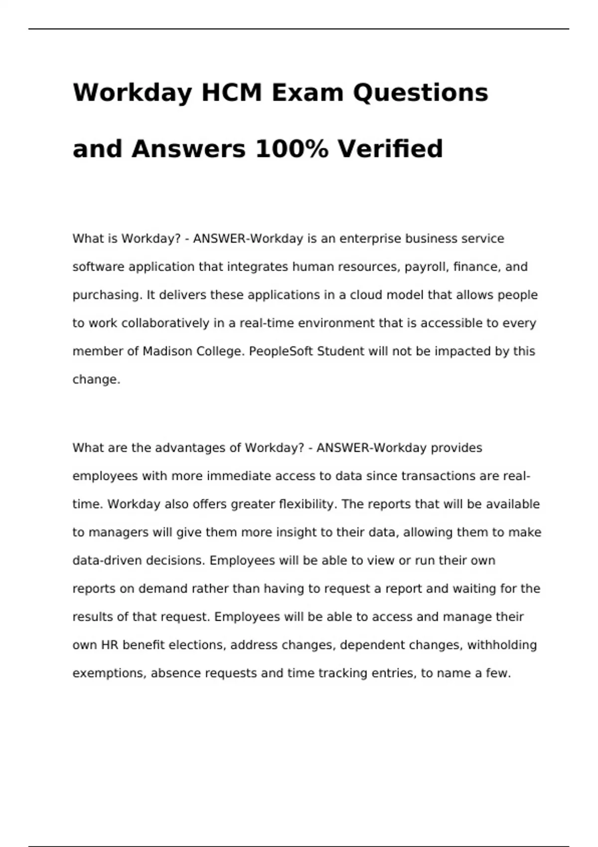 What are the advantages of Workday? - ANSWER-Workday provides