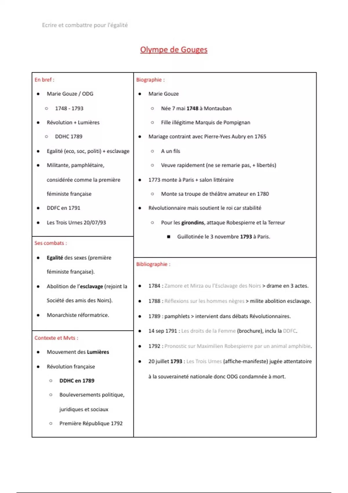 Résumé Fiche de révision : Ecrire et Combattre pour l'égalité (DDFC).