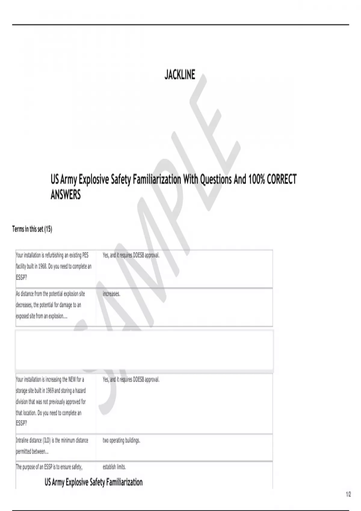 US Army Explosive Safety Familiarization With Questions And 100% CORRECT