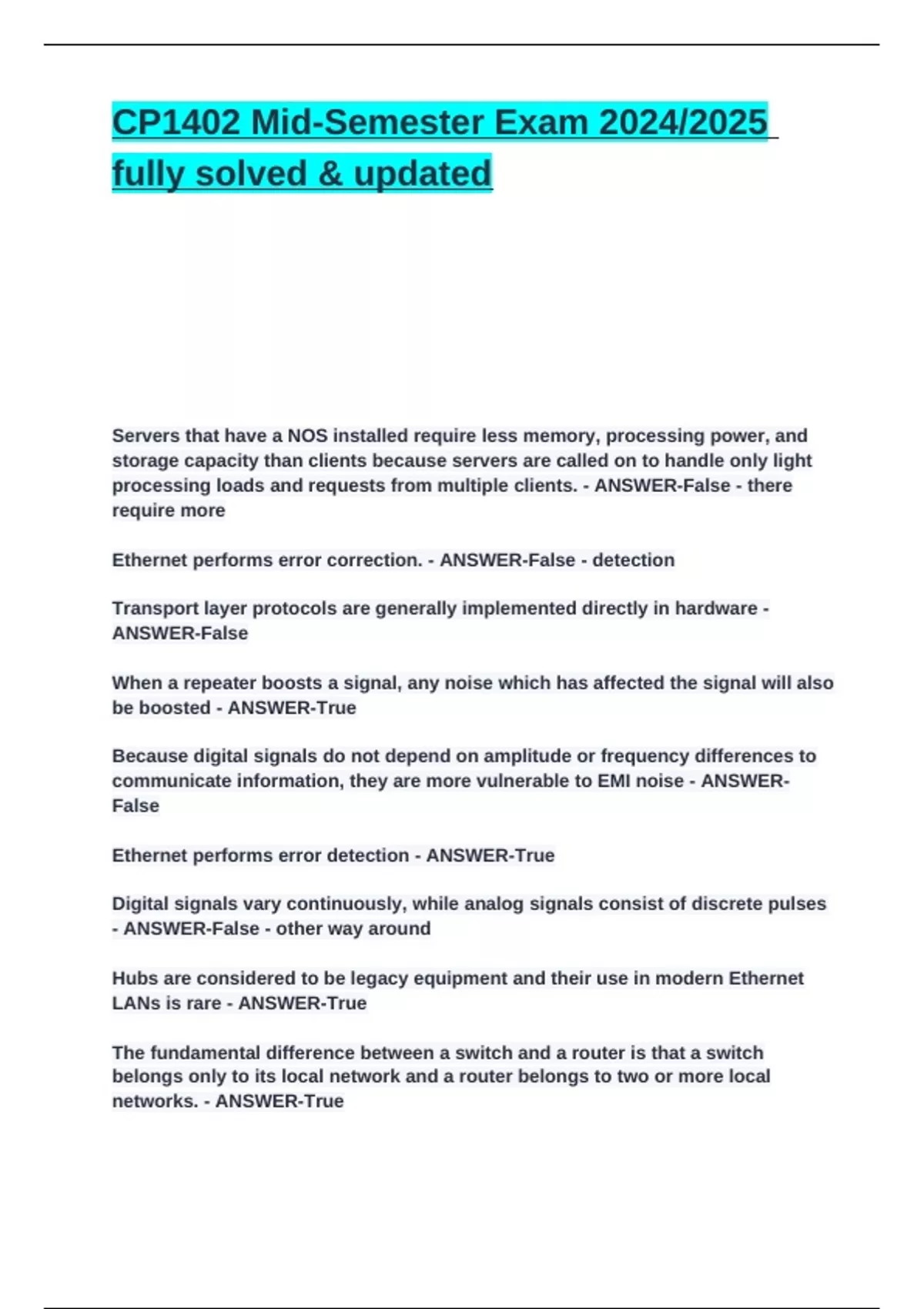Ethernet performs error correction. - ANSWER-False - detection