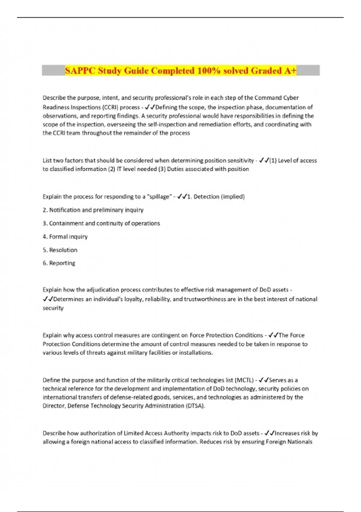 sappc study guide completed 100 solved graded a
