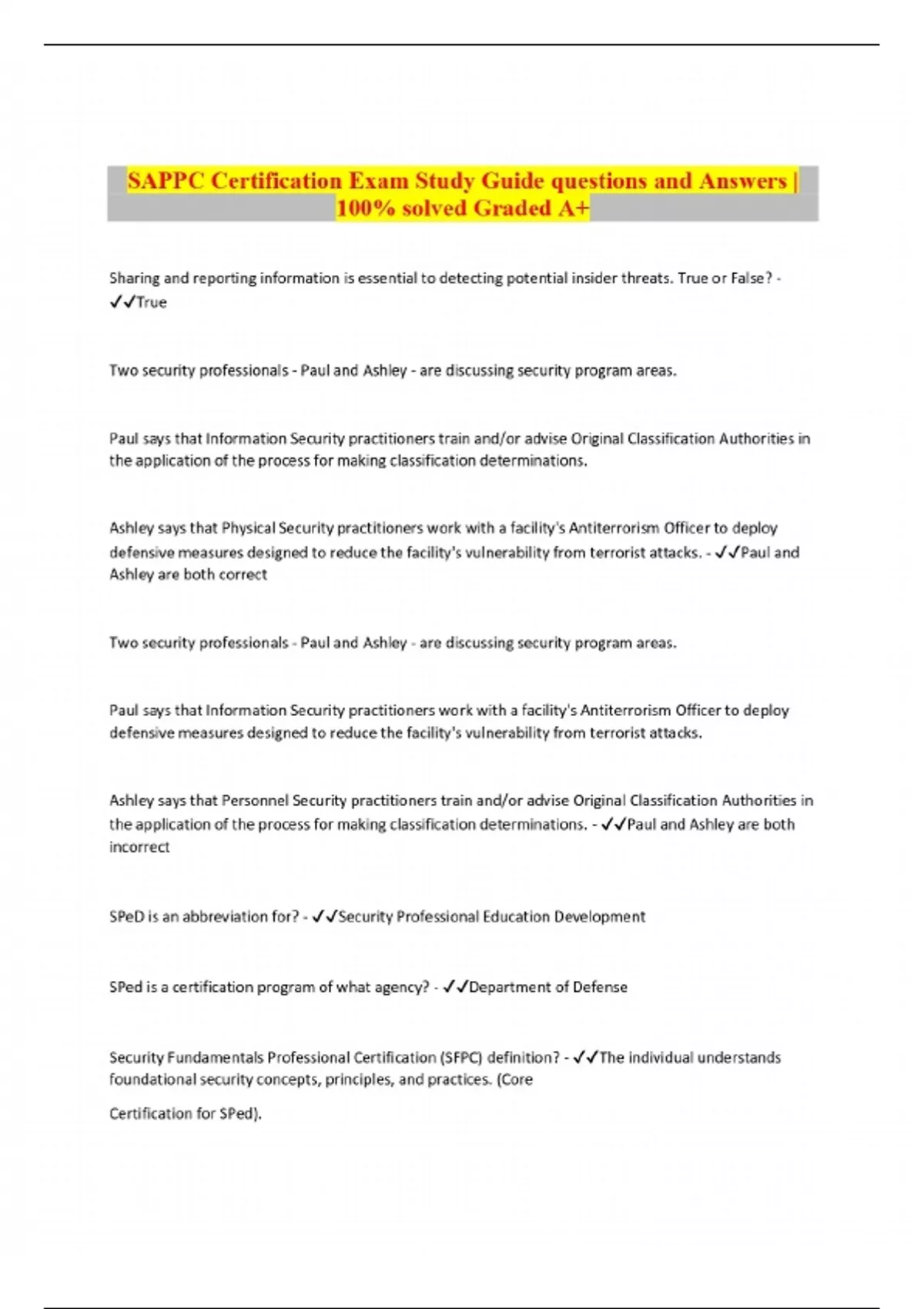 SAPPC Certification Exam Study Guide questions and Answers | 100% solved Graded A+