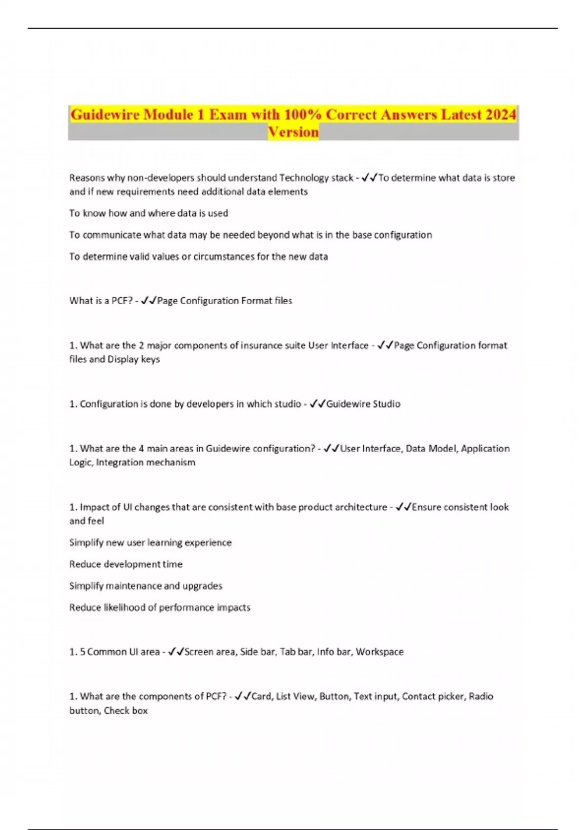 Guidewire Module 1 Exam with 100% Correct Answers Latest 2024 Version