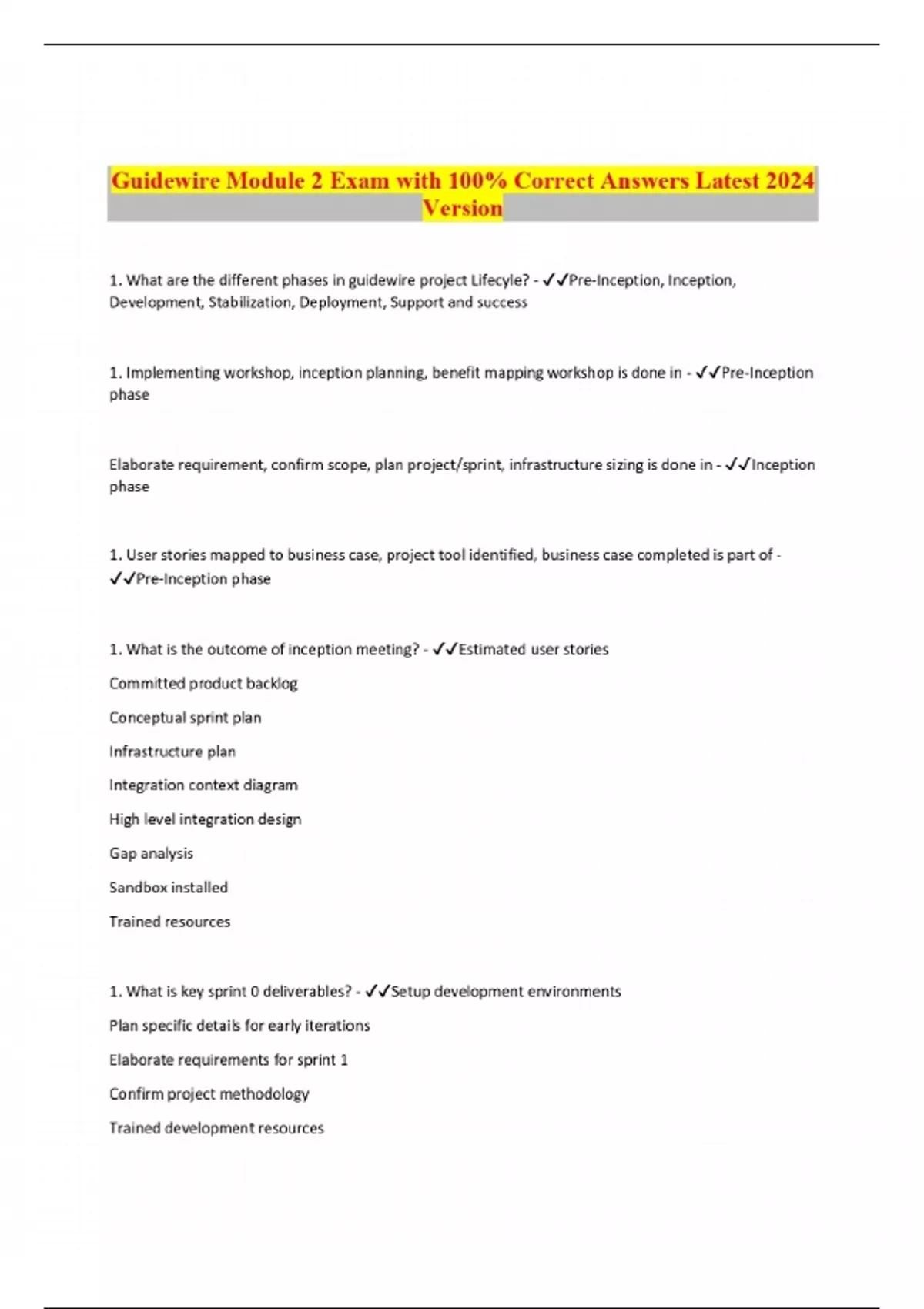 Guidewire Module 2 Exam with 100% Correct Answers Latest 2024 Version