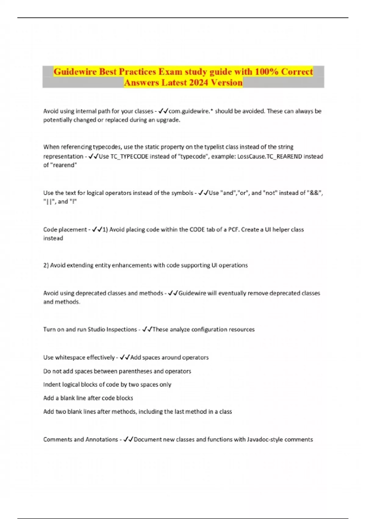 Guidewire Best Practices Exam study guide with 100% Correct Answers Latest 2024 Version