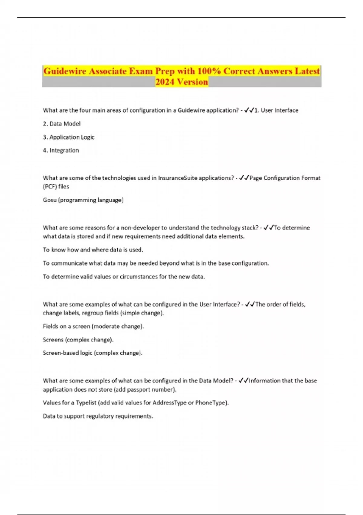 Guidewire Associate Exam Prep with 100% Correct Answers Latest 2024 Version