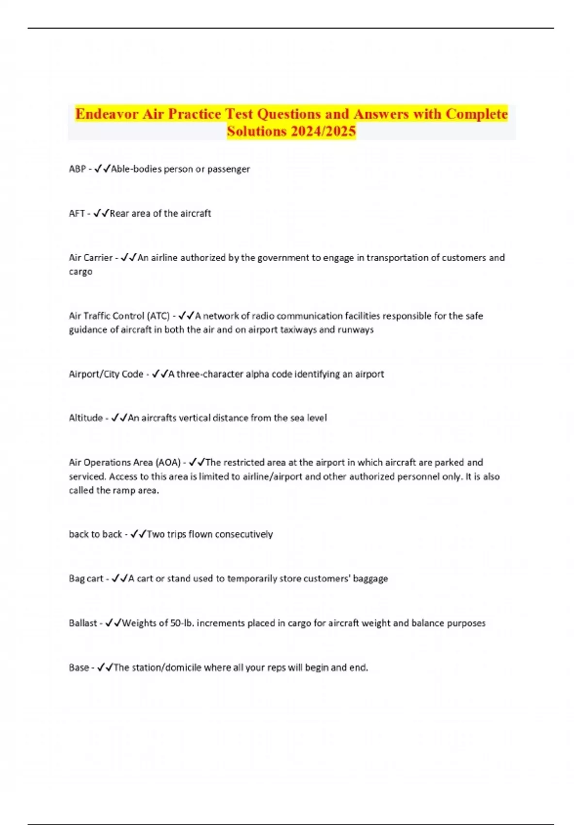 Endeavor Air Practice Test Questions and Answers with Complete Solutions 2024/2025