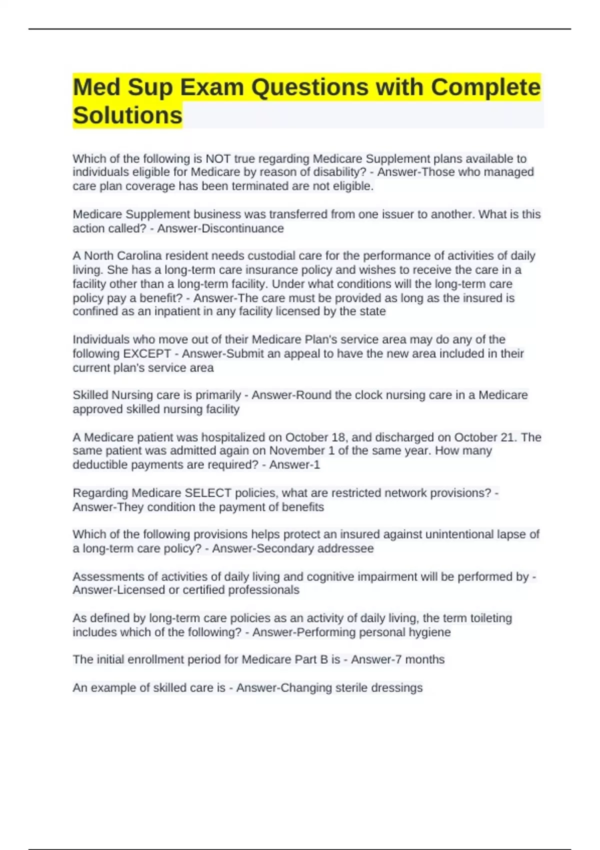 Skilled Nursing care is primarily - Answer-Round the clock nursing care in a Medicare