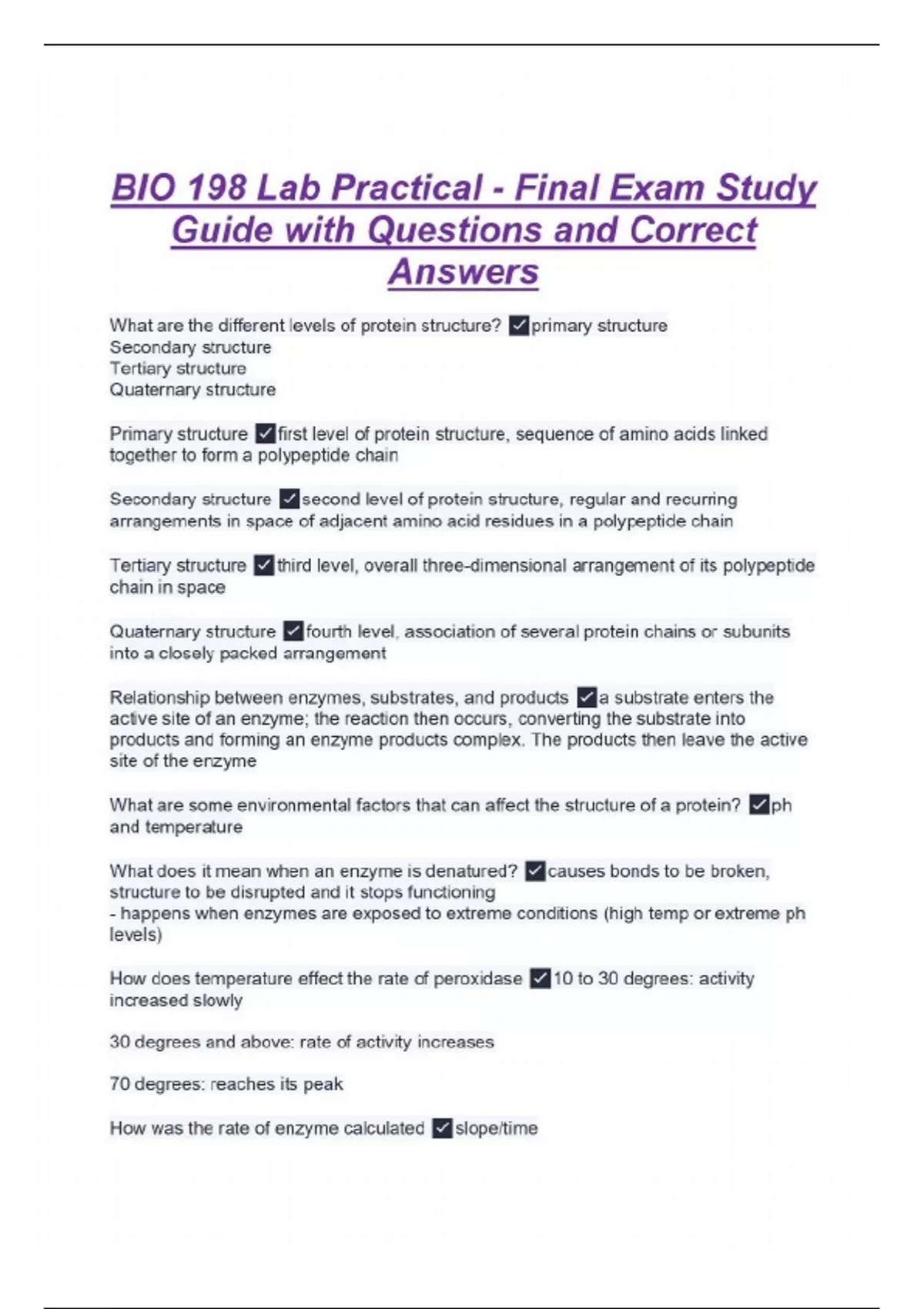 BIO 198 Lab Practical - Final Exam Study Guide with Questions and Correct Answers