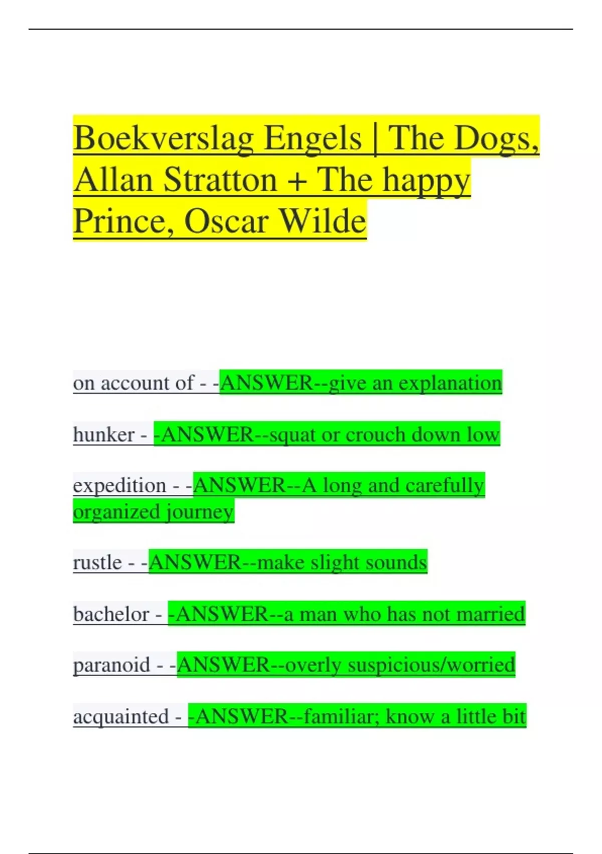 Boekverslag Engels | The Dogs, Allan Stratton + The happy Prince, Oscar Wilde