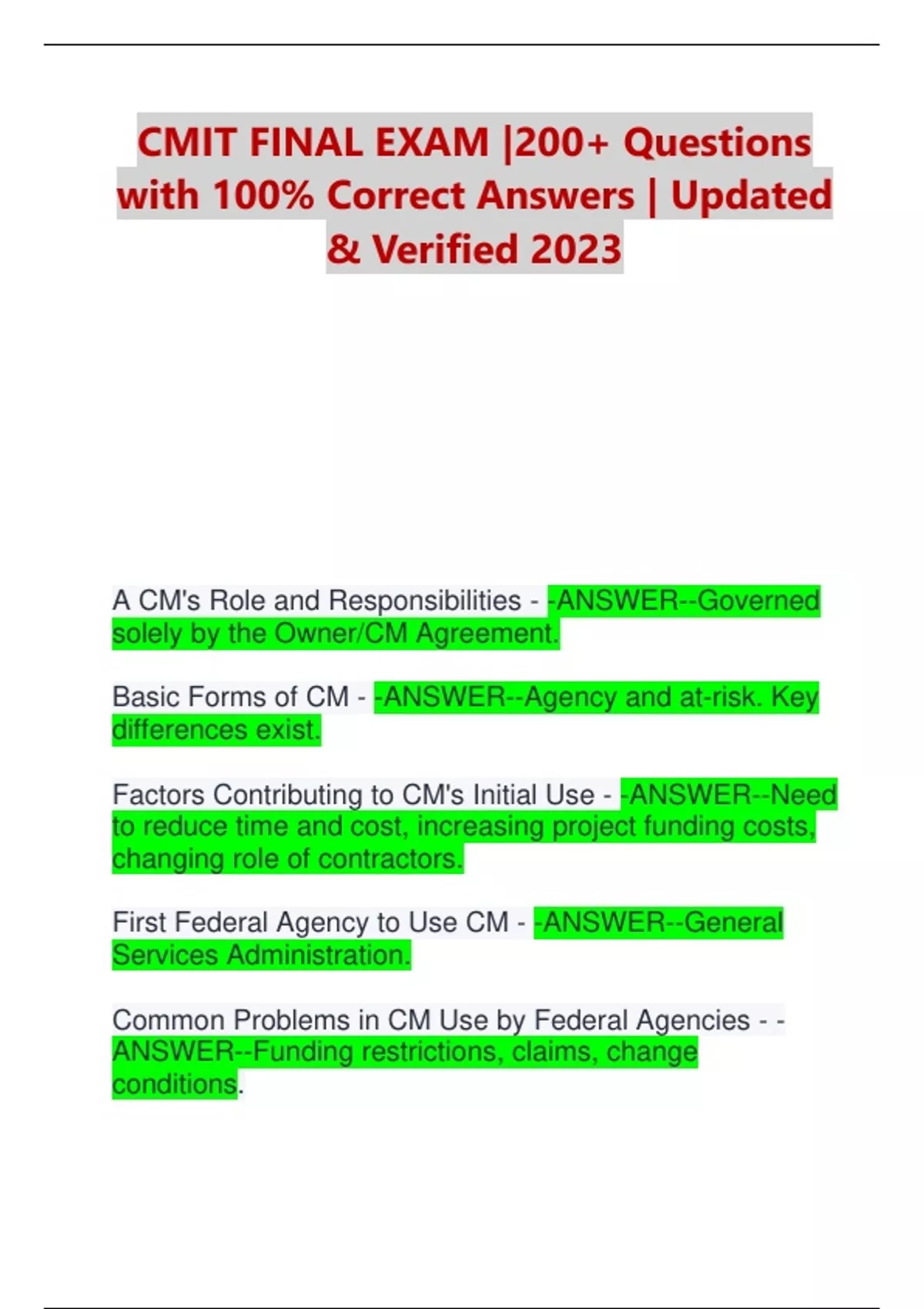 CMAA Construction Management Standards - -ANSWER-