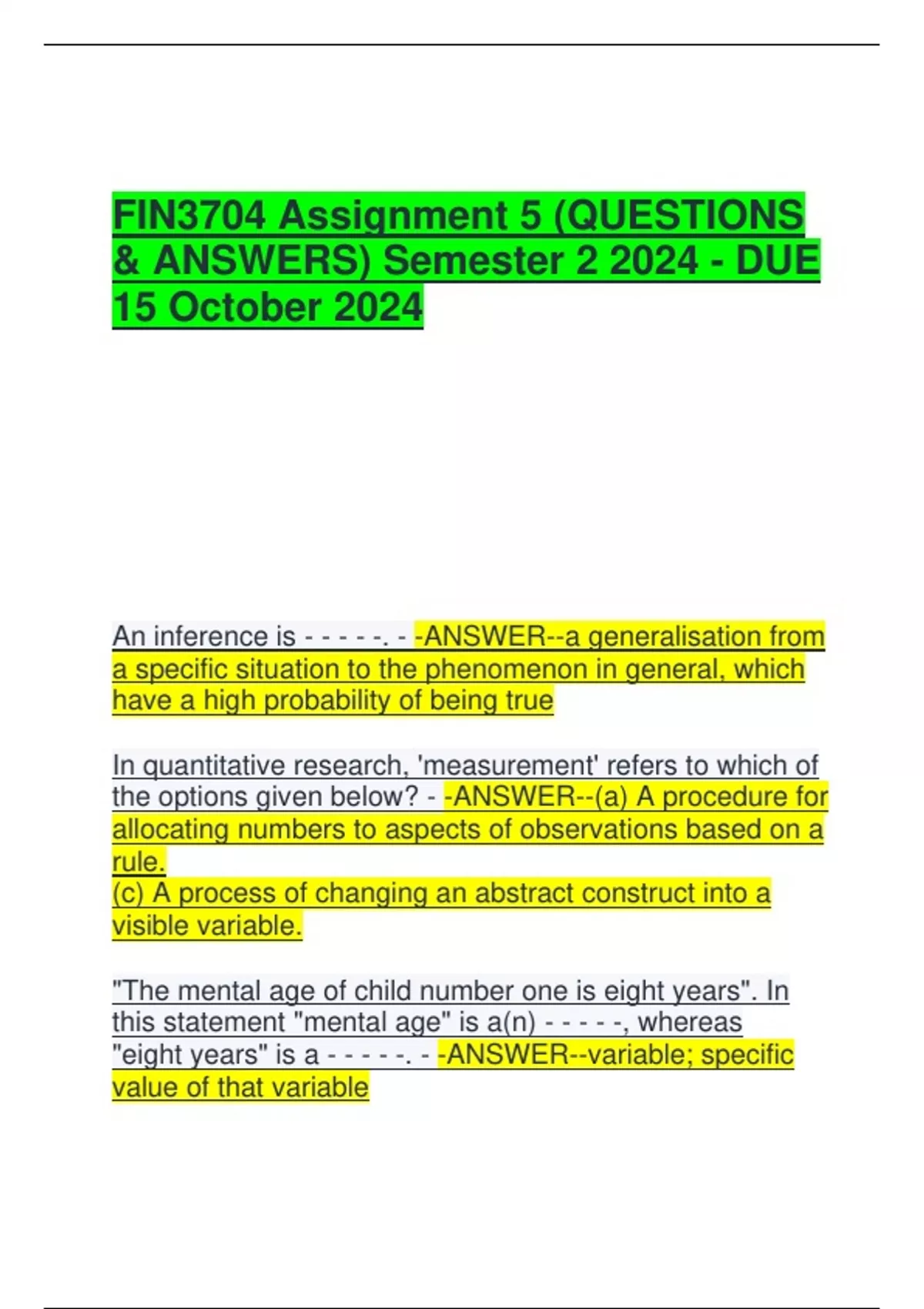 & ANSWERS) Semester 2 2024 - DUE
