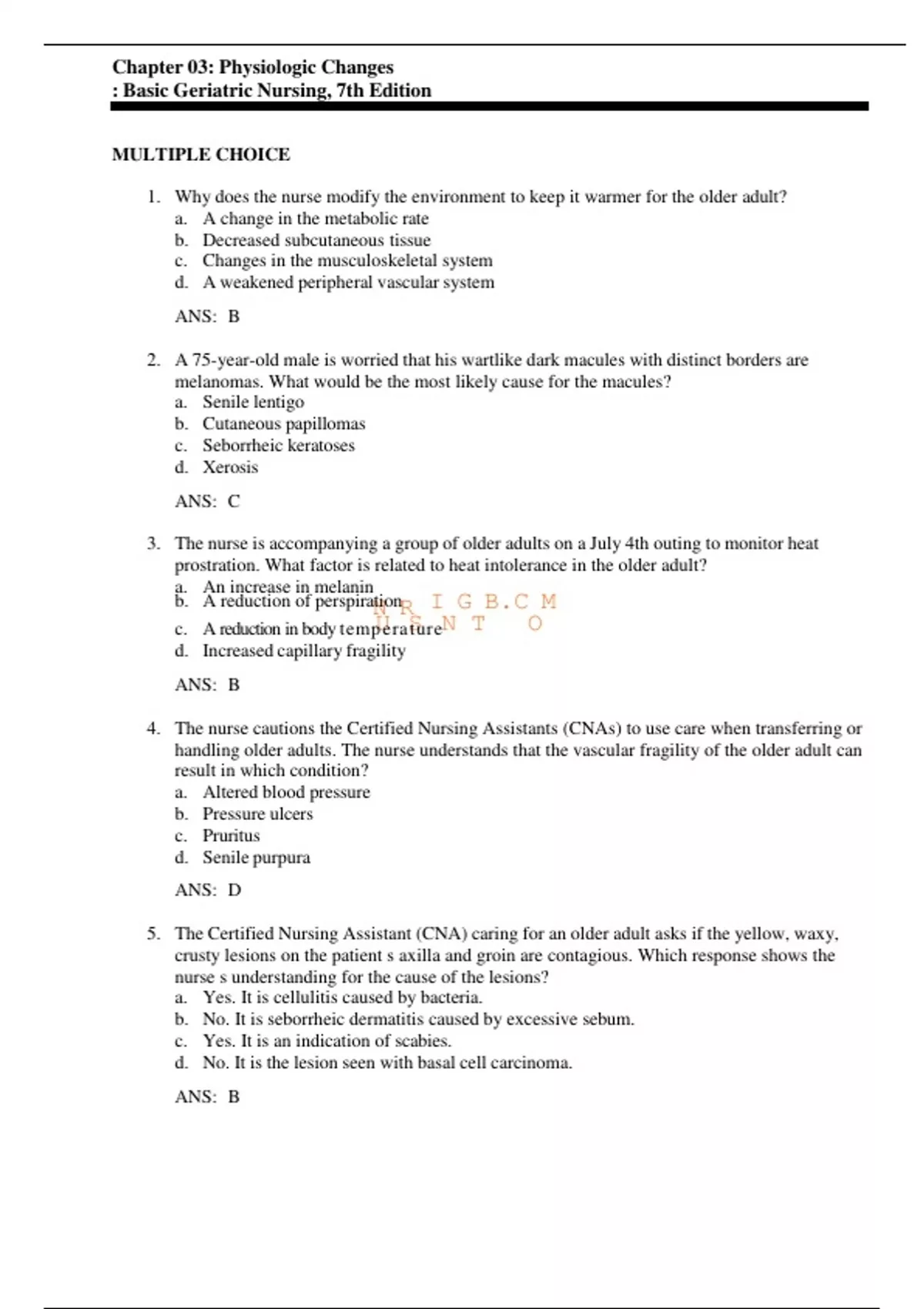 Chapter 03: Physiologic Changes