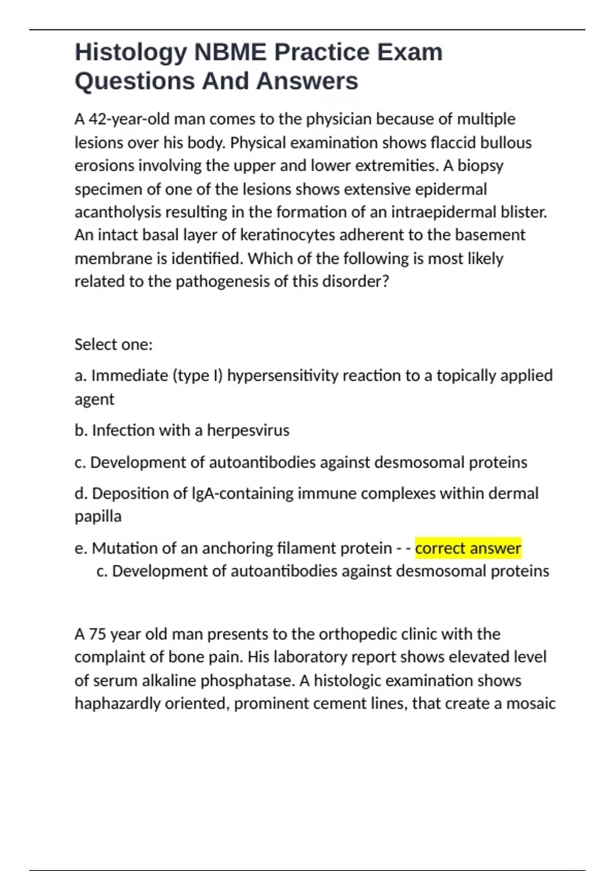 Histology NBME Practice Exam Questions And Answers