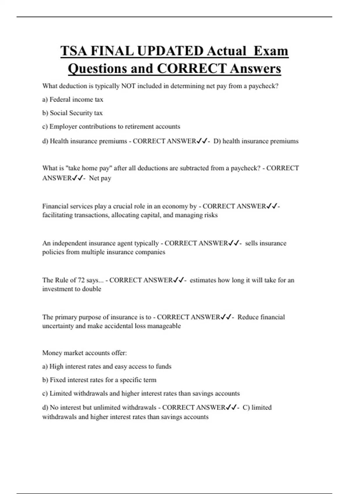 Questions and CORRECT Answers