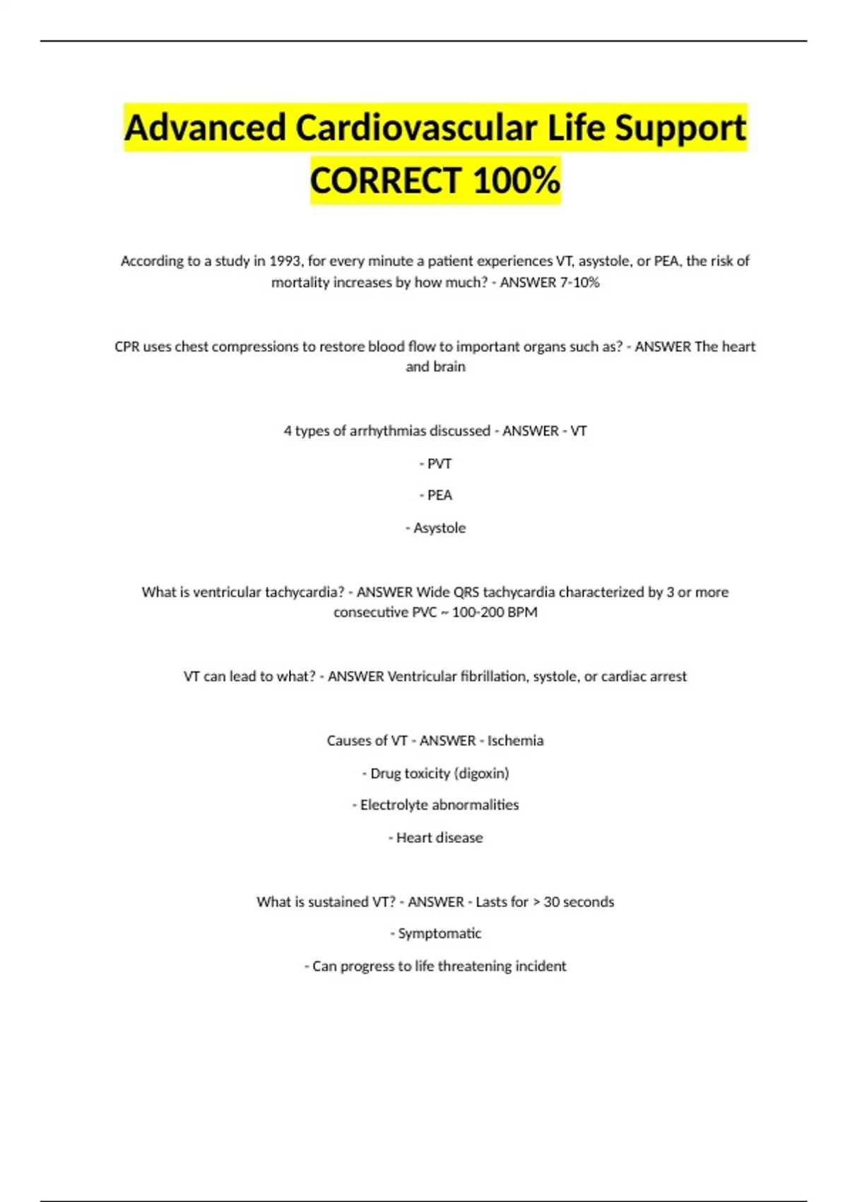 What is sustained VT? - ANSWER - Lasts for > 30 seconds