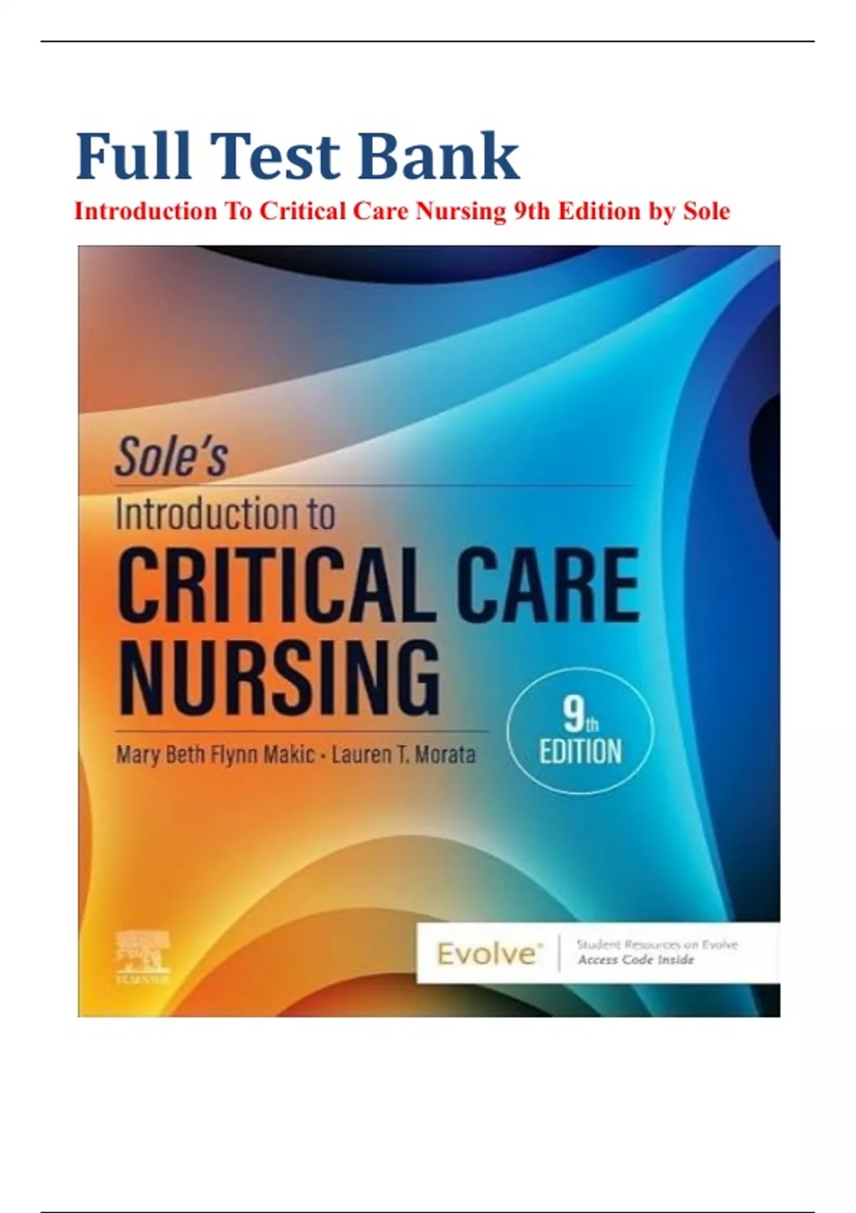 Full Test Bank Introduction To Critical Care Nursing 9th Edition by Mary Lou||ALL CHAPTERS COVERED