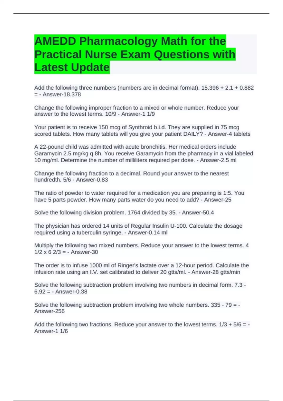 Practical Nurse Exam Questions with