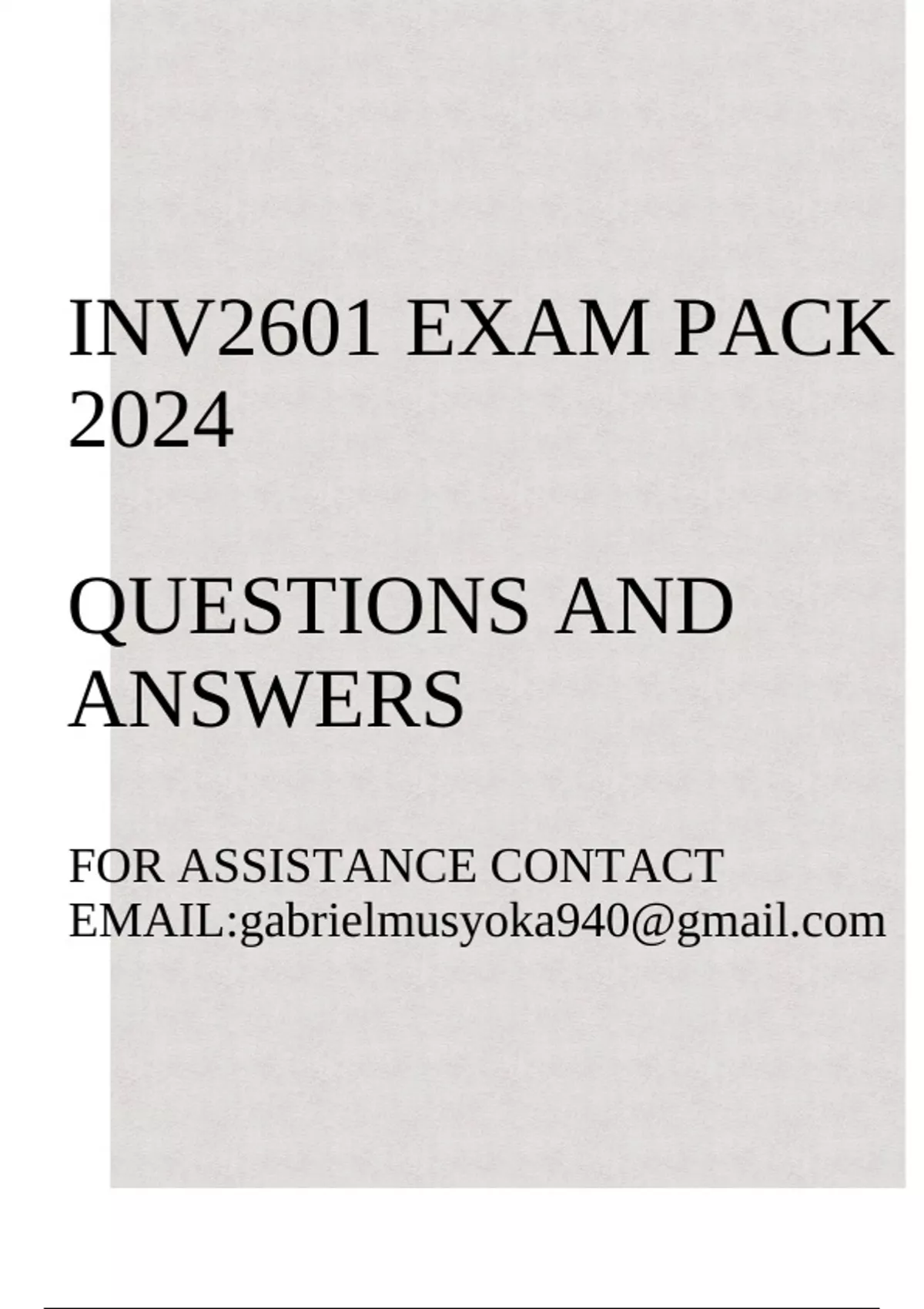 INV2601 Exam pack 2024(Fundamentals of Investment) With accurate answers and assurance that they are in the exam