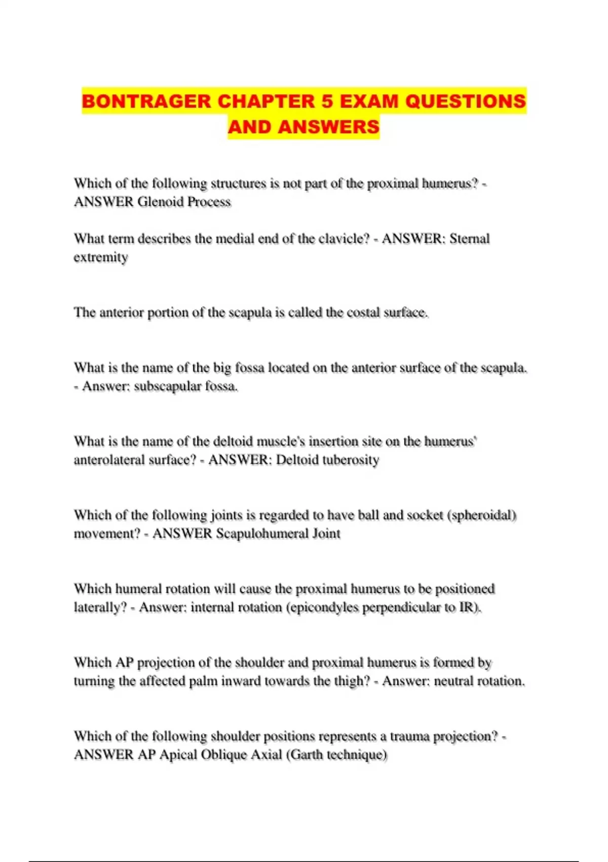 BONTRAGER CHAPTER 5 EXAM QUESTIONS