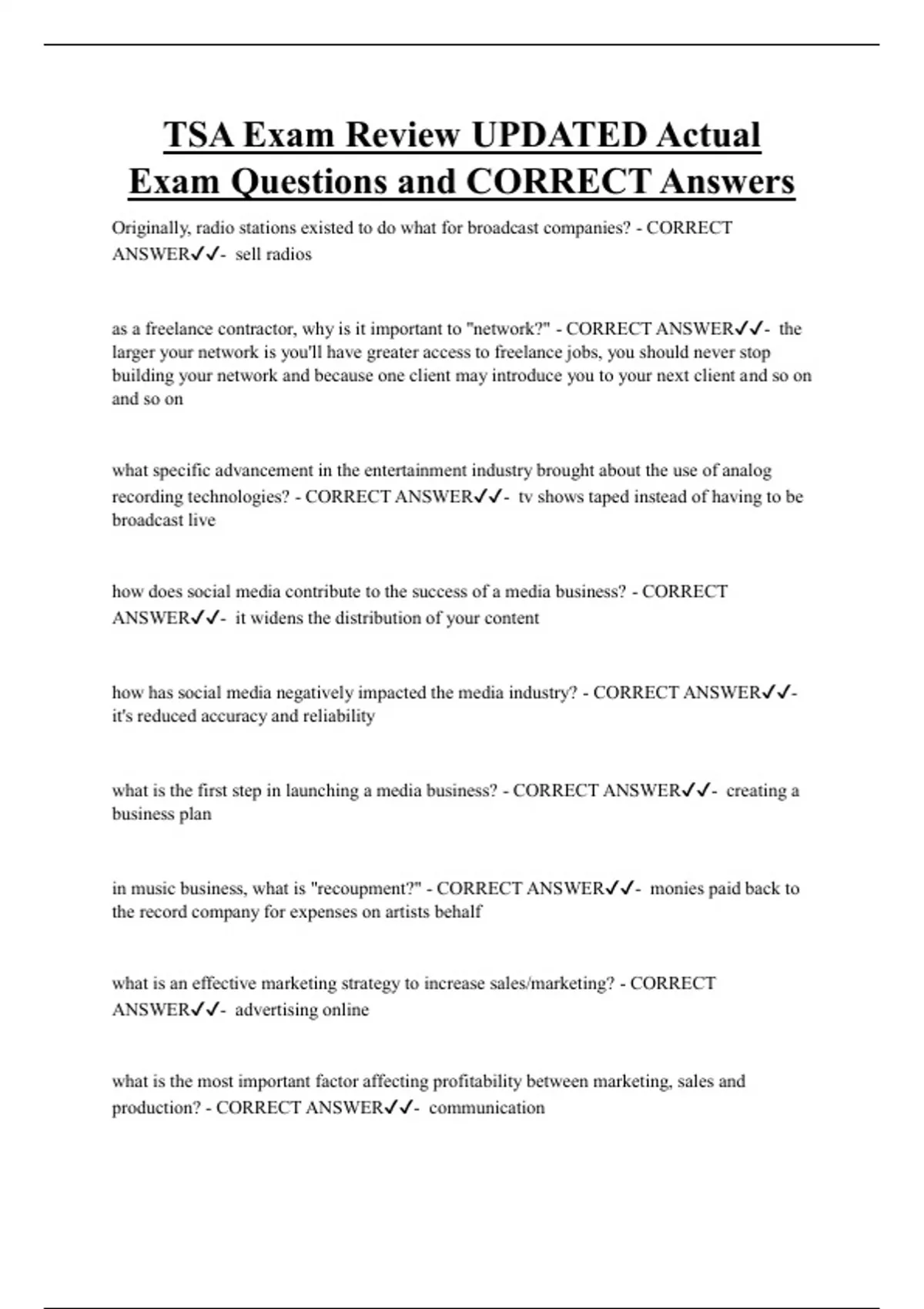 Exam Questions and CORRECT Answers