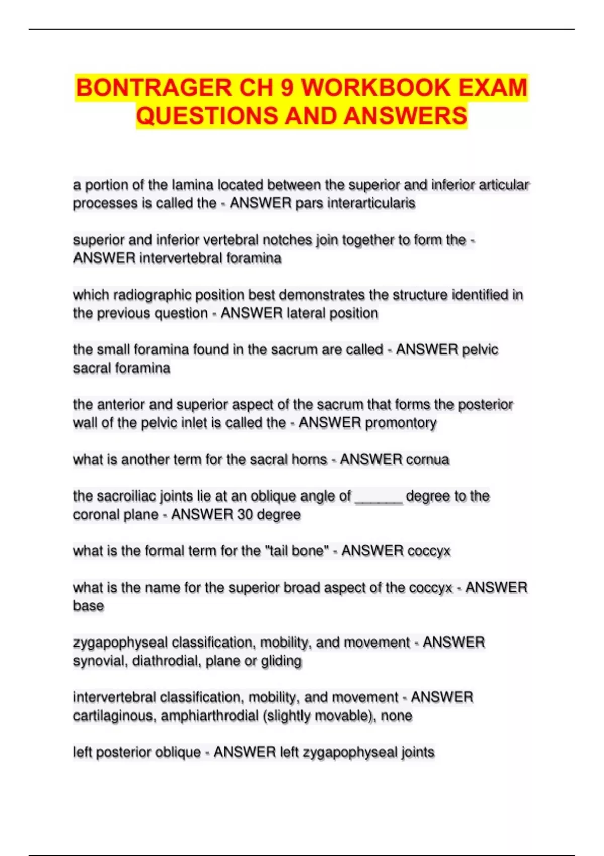 BONTRAGER CH 9 WORKBOOK EXAM