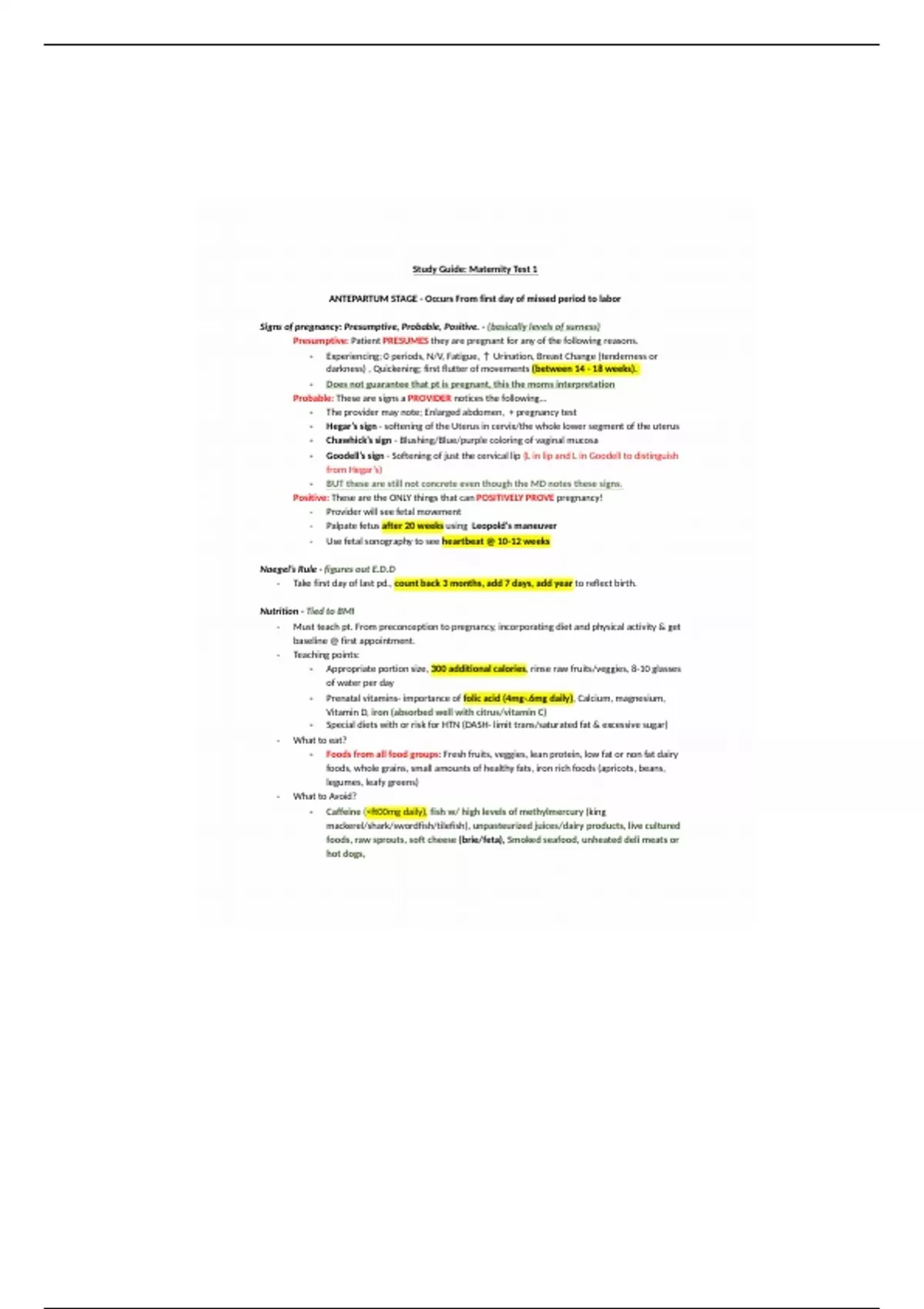 ANTEPARTUM STAGE - Occurs From first day of missed period to labor