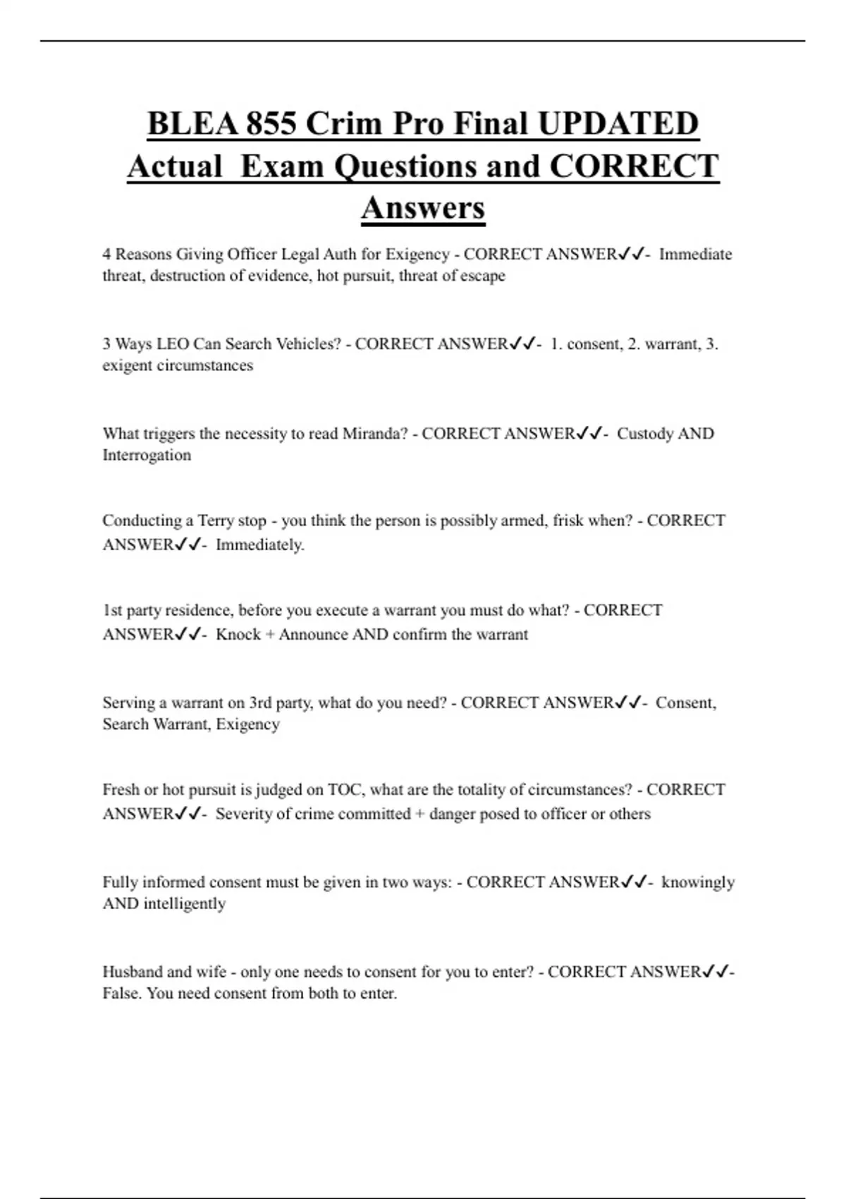 Actual Exam Questions and CORRECT