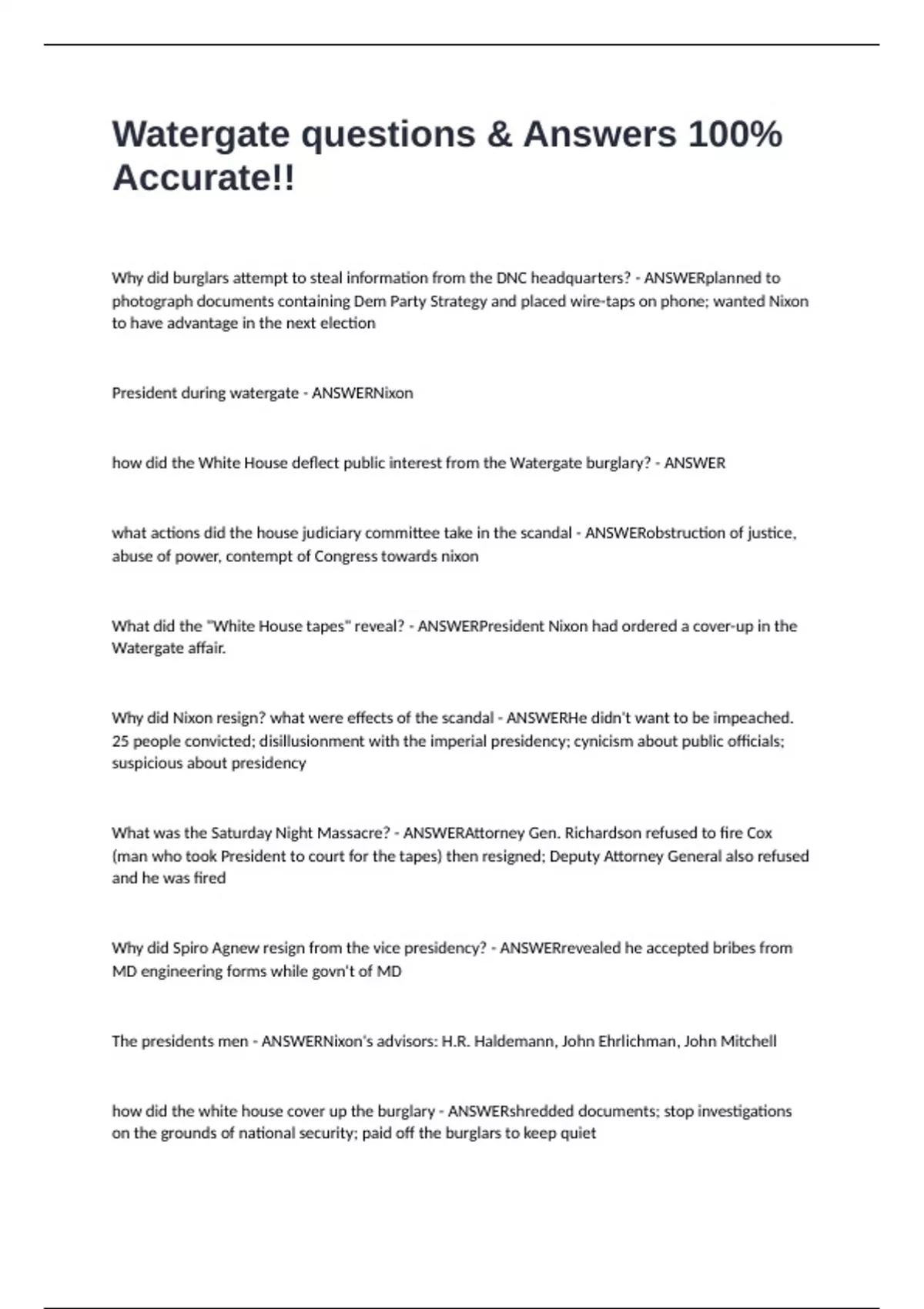 Why did Nixon resign? what were effects of the scandal - ANSWERHe didn't want to be impeached.