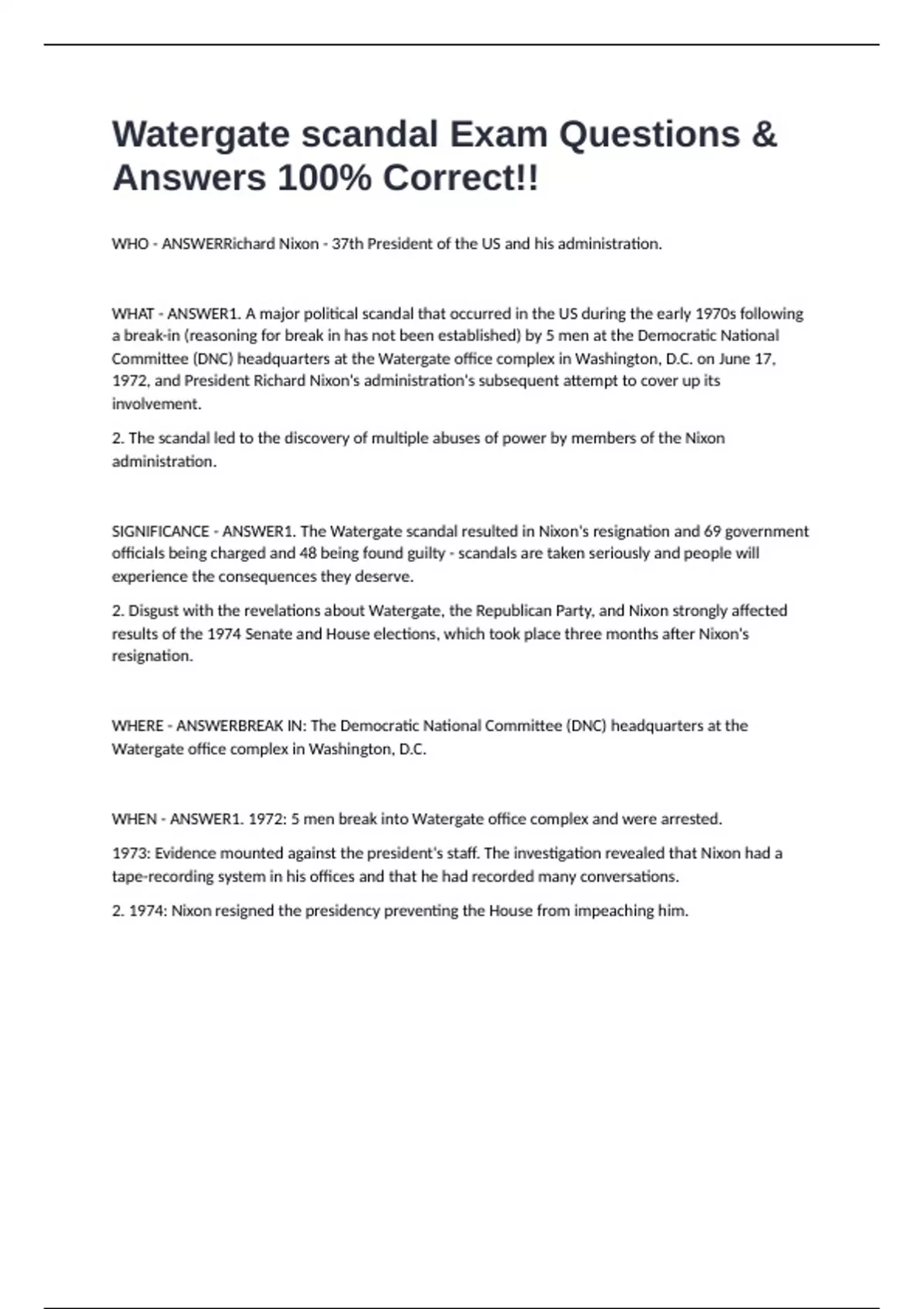 SIGNIFICANCE - ANSWER1. The Watergate scandal resulted in Nixon's resignation and 69 government