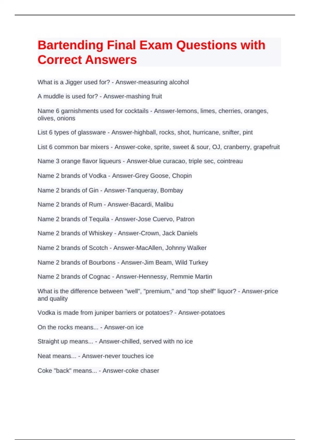 What is a Jigger used for? - Answer-measuring alcohol