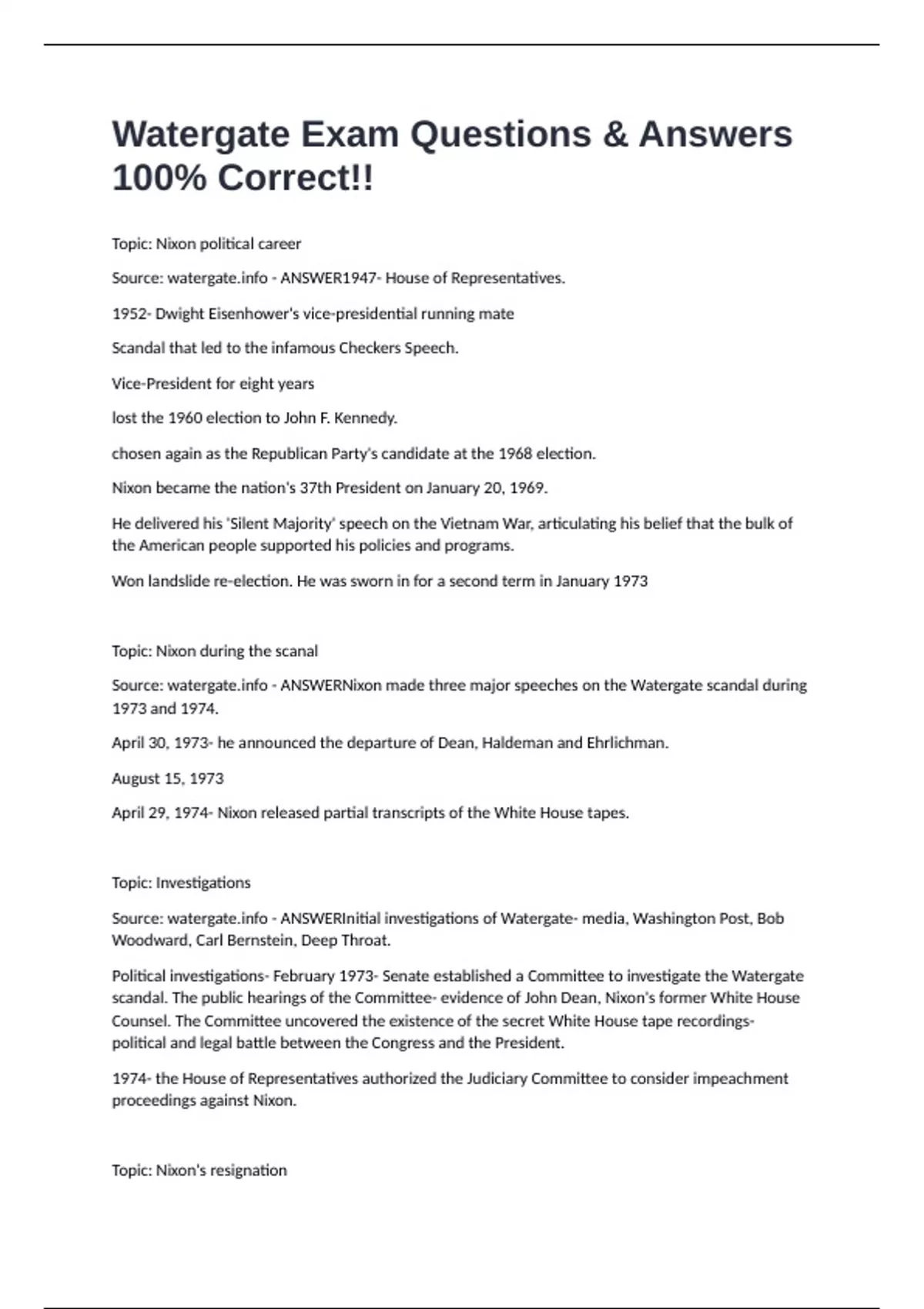 Topic: Nixon's resignation
