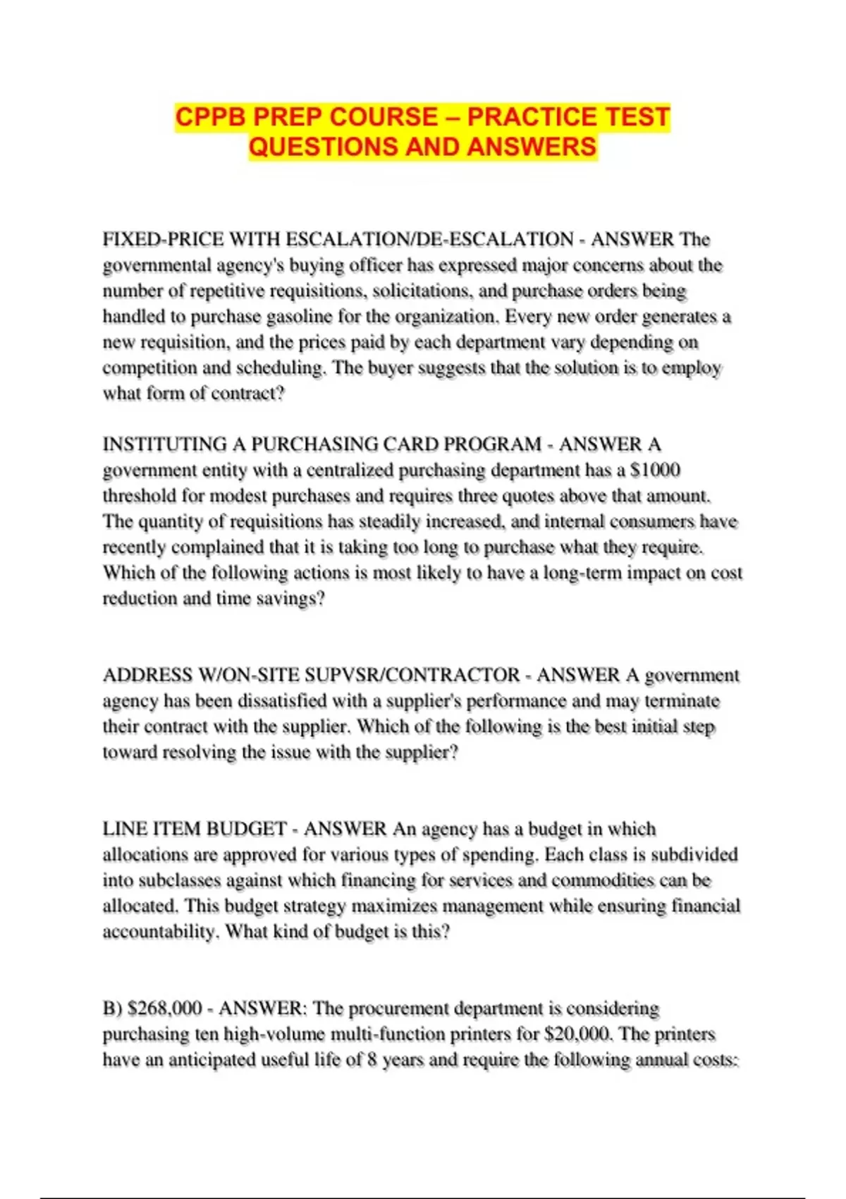 CPPB PREP COURSE – PRACTICE TEST QUESTIONS AND ANSWERS...