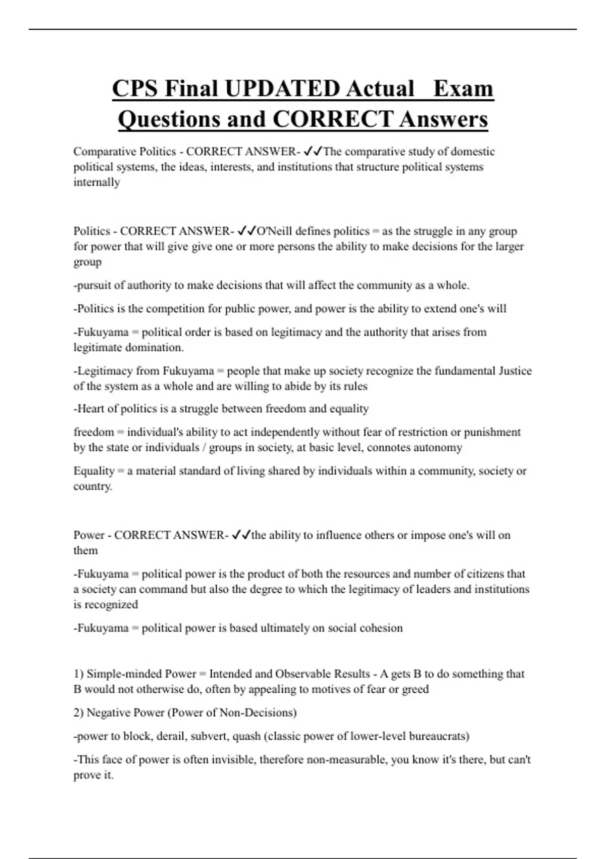 Politics - CORRECT ANSWER- ✔✔O'Neill defines politics = as the struggle in any group