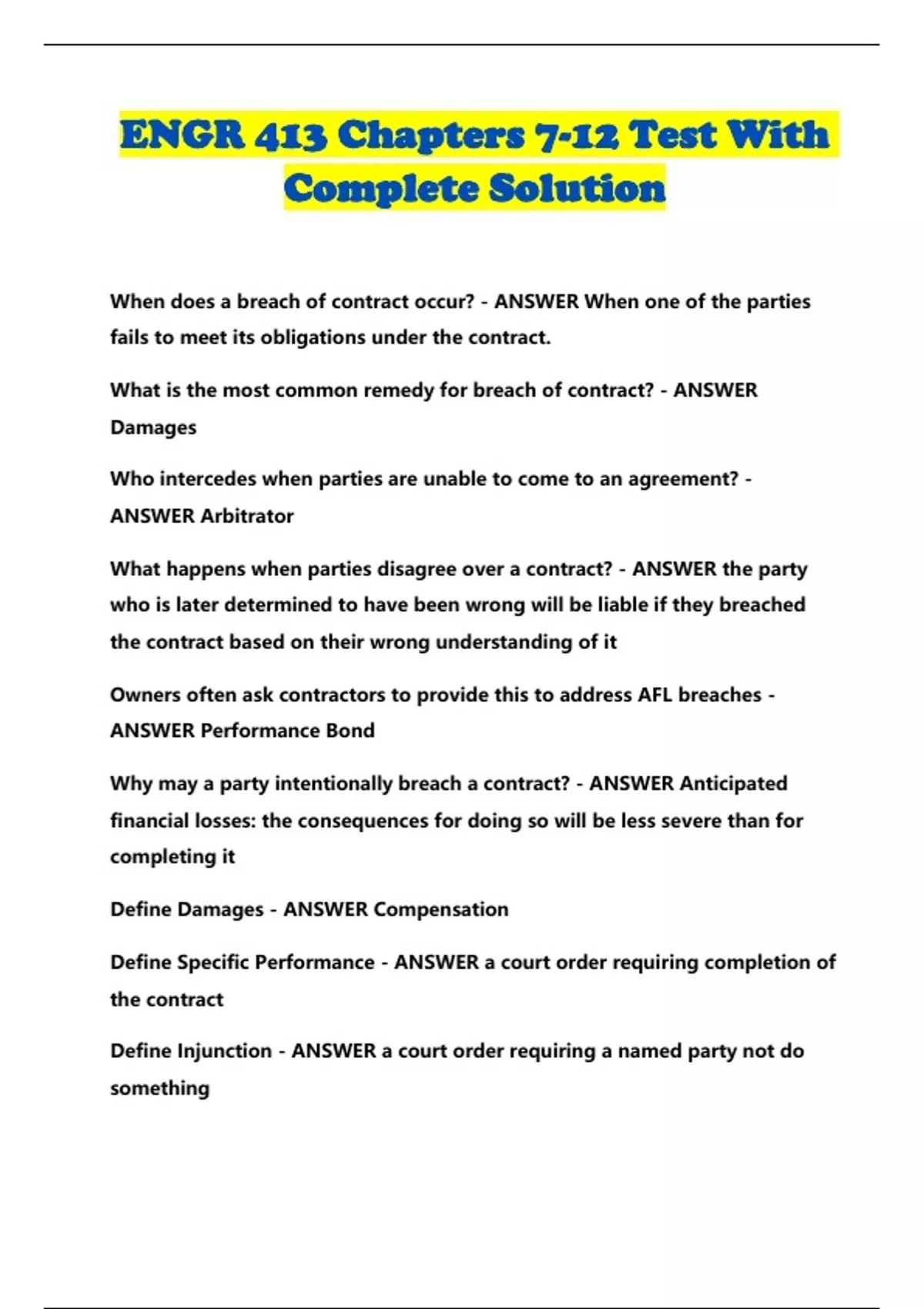 What happens when parties disagree over a contract? - ANSWER the party