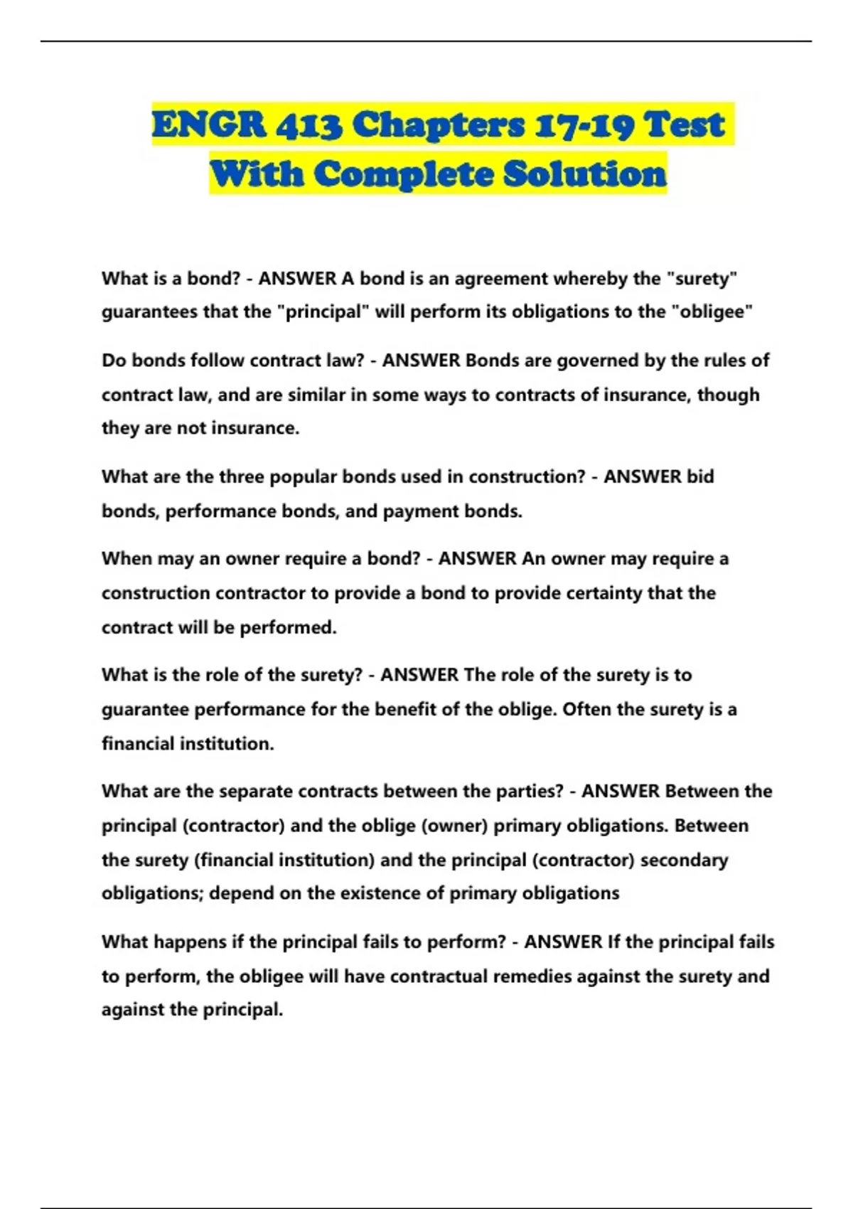 Do bonds follow contract law? - ANSWER Bonds are governed by the rules of