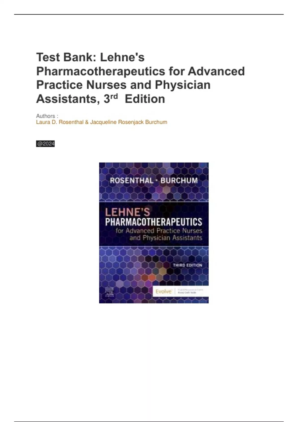 Test Bank For Lehne-s Pharmacotherapeutics for Advanced Practice Nurses and Physician Assistants, 3rd Edition Authors Laura D. Rosenthal & Jacqueline Rosenjack Burchum 2024 version