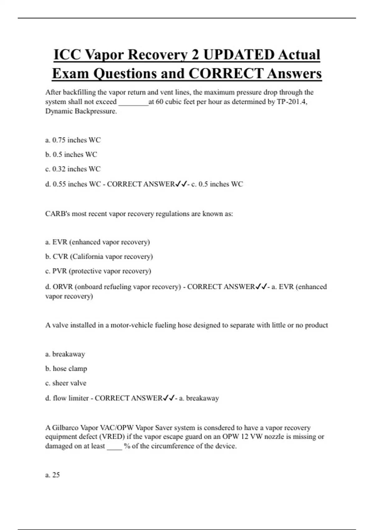 d. vapor recovery adaptor - CORRECT ANSWER✔✔- d. vapor recovery adaptor....