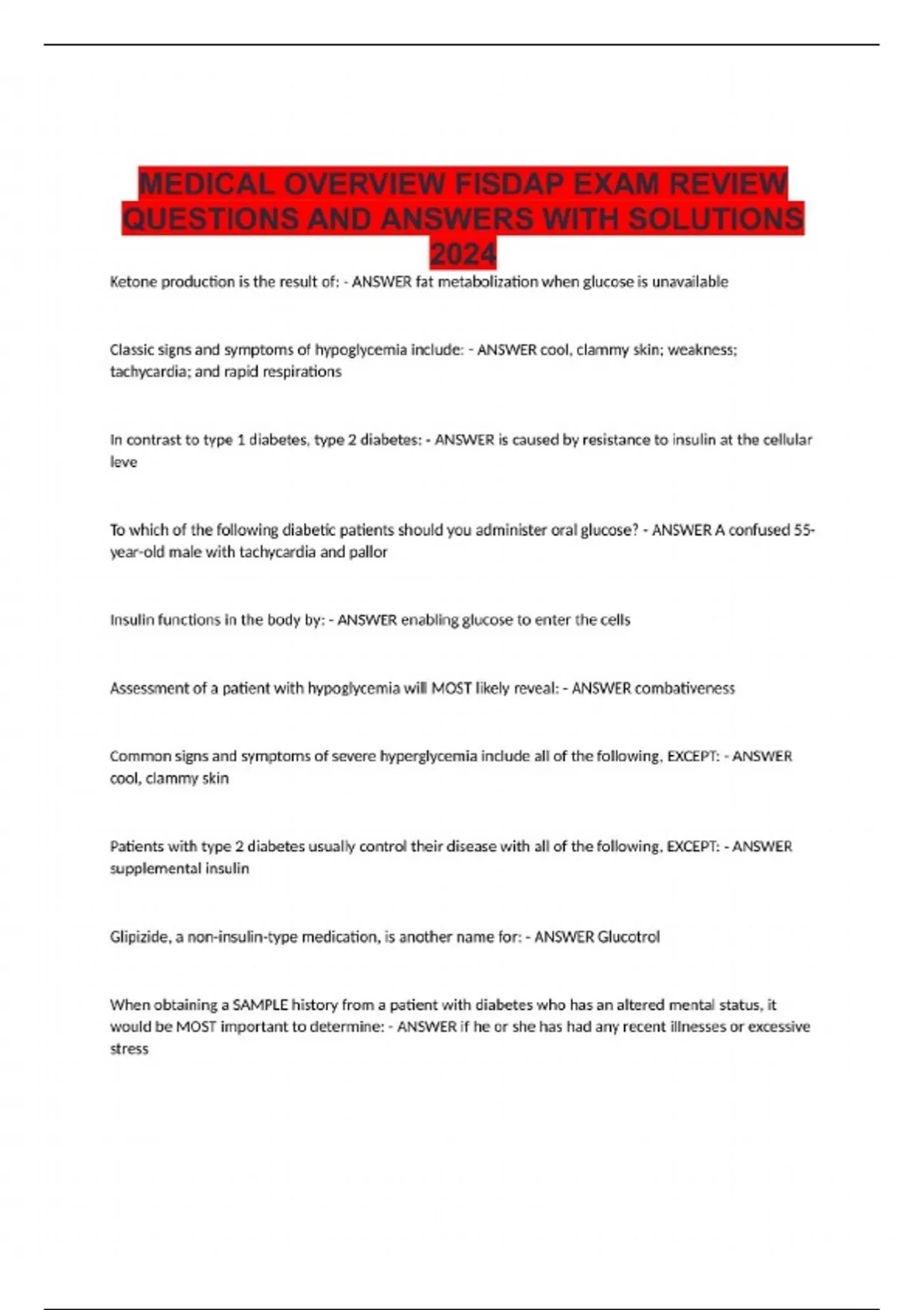 MEDICAL OVERVIEW FISDAP EXAM REVIEW QUESTIONS AND ANSWERS WITH SOLUTIONS 2024