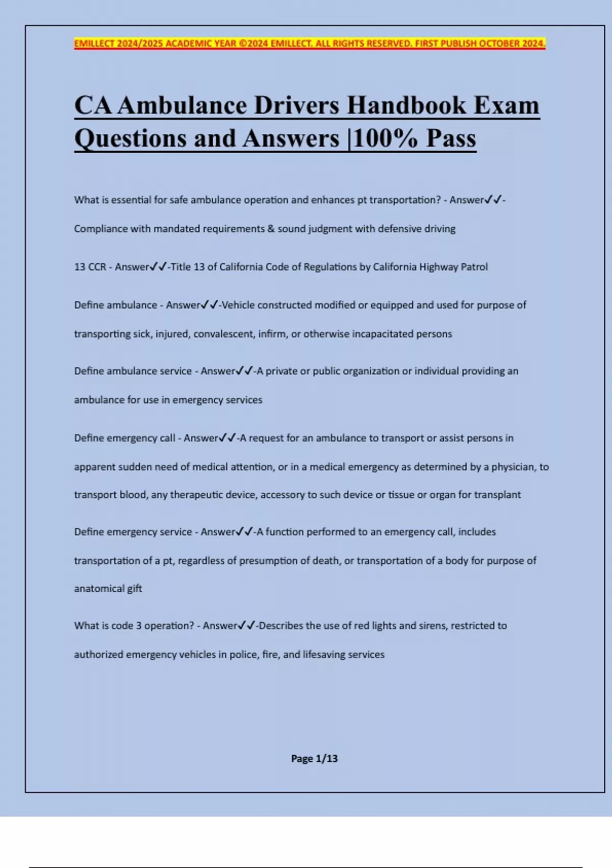13 CCR - Answer✔✔-Title 13 of California Code of Regulations by California Highway Patrol