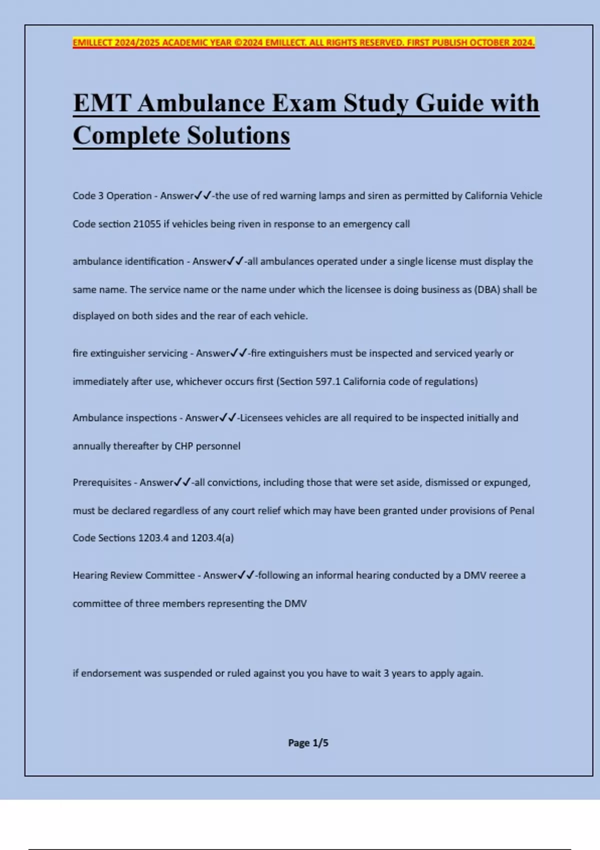 EMT Ambulance Exam Study Guide with