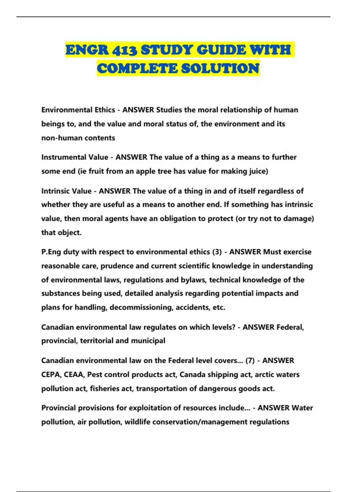 ENGR 413 STUDY GUIDE WITH