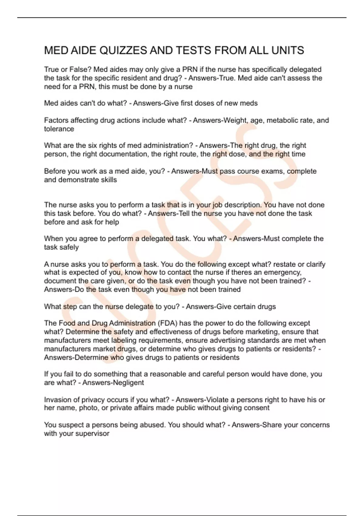 MED AIDE QUIZZES AND TESTS FROM ALL UNITS
