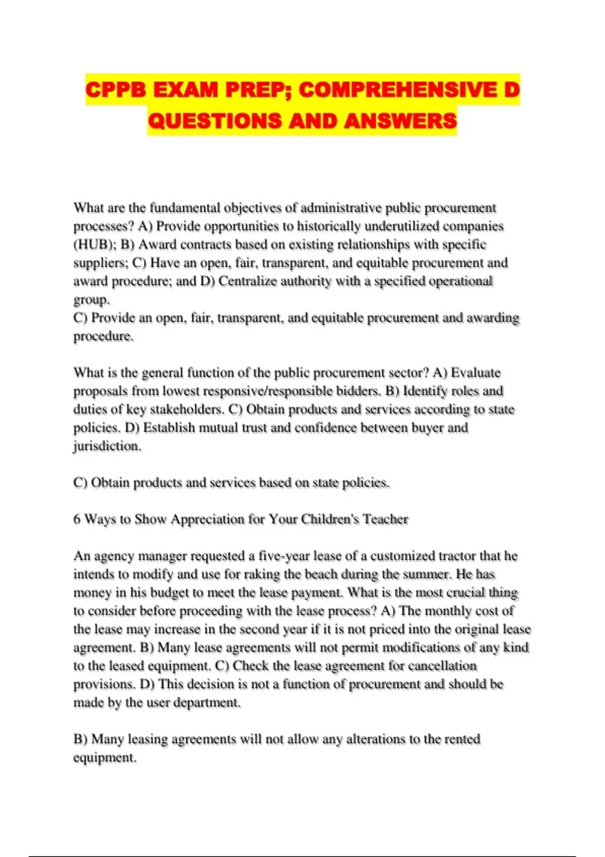 CPPB EXAM PREP; COMPREHENSIVE D