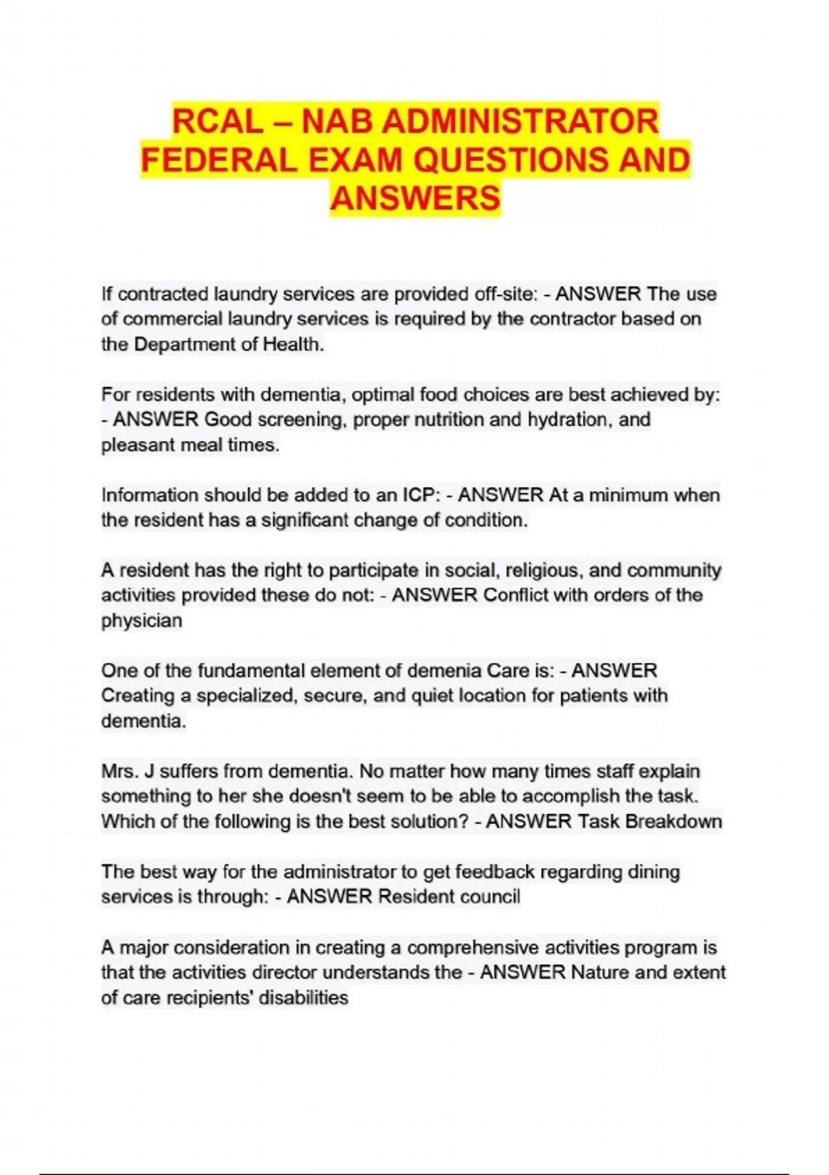 RCAL – NAB ADMINISTRATOR FEDERAL EXAM QUESTIONS AND ANSWERS...