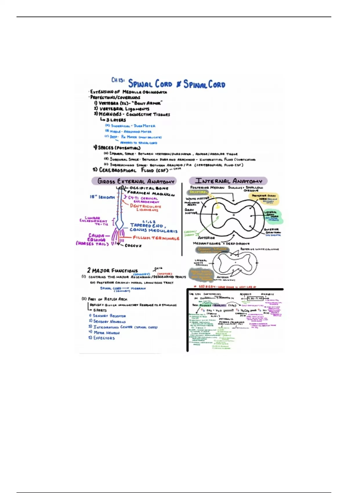 This is a comprehensive and detailed note on Chapter 15 Spinal Cord and Nerves for Bio 209. *Essential Study Material!!