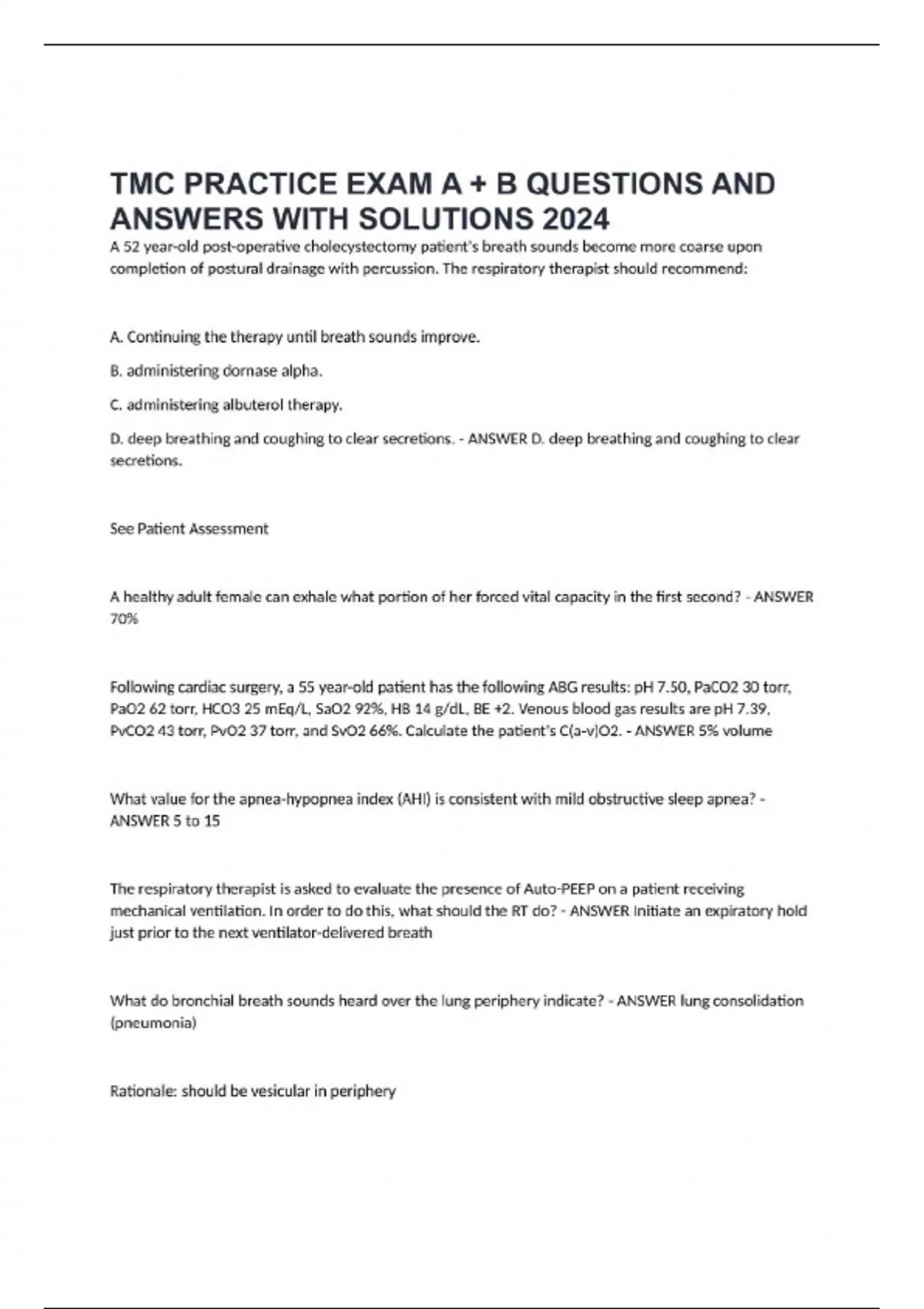 TMC PRACTICE EXAM A + B QUESTIONS AND ANSWERS WITH SOLUTIONS 2024
