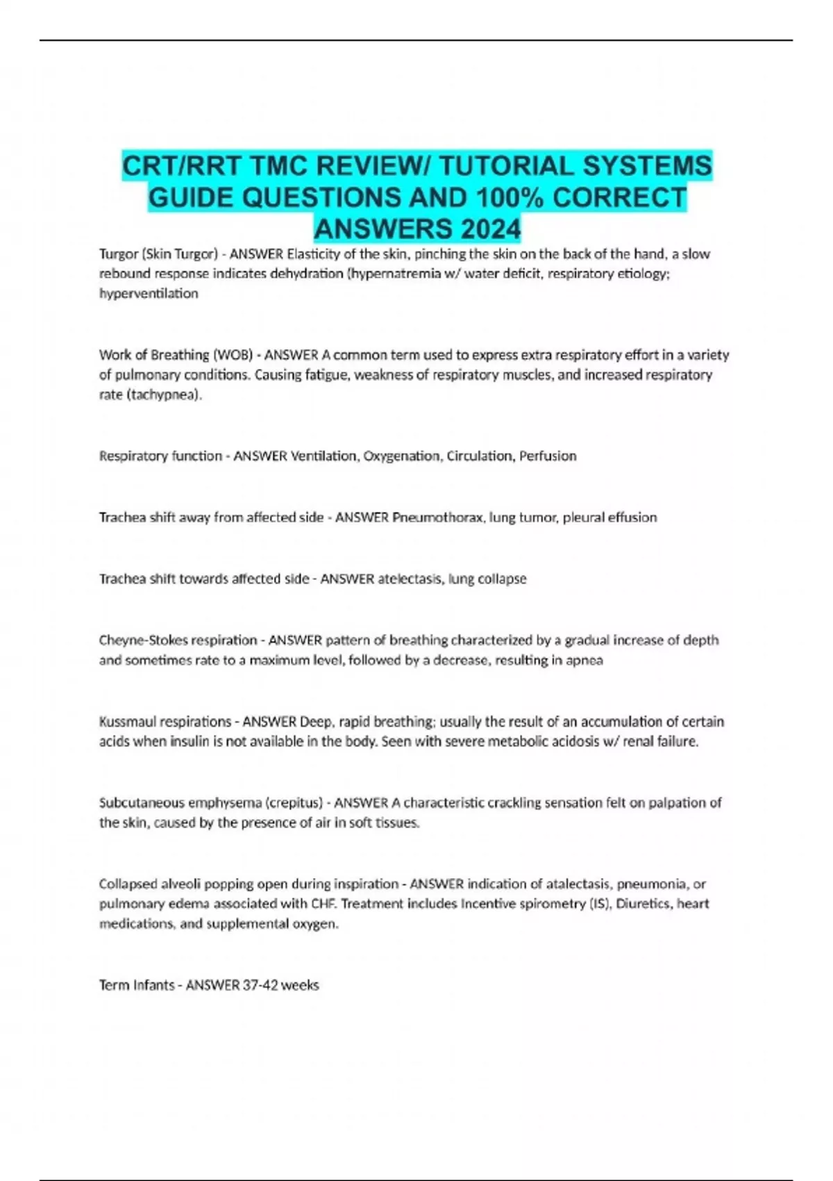 CRT/RRT TMC REVIEW/ TUTORIAL SYSTEMS GUIDE QUESTIONS AND 100% CORRECT ANSWERS 2024
