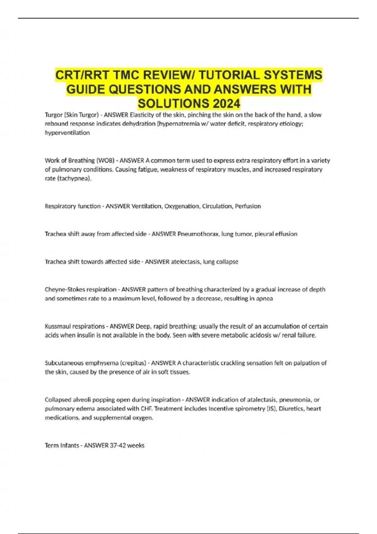 CRT/RRT TMC REVIEW/ TUTORIAL SYSTEMS GUIDE QUESTIONS AND ANSWERS WITH SOLUTIONS 2024
